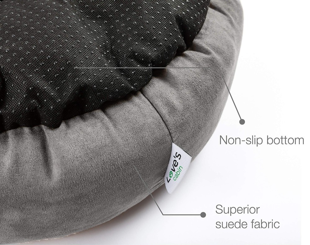 Manufacturer’s Warranty: Try Today Risk Free with Our Money Back Guarantee! Stock is limited. Order today to ensure availability. Comfortable and Cozy: Round shape is great for pets to curl up and snuggle down for a peaceful sleep. Raised sides provide support for pets' head, neck. The padded pillow offers relief for stiff joins and tired muscles. It filled with high-loft polyester that surround pets to promote feelings of security. Machine washable for easy cleaning: The Pet bed is completely machine washable and can be placed within standard washers to make cleaning quick and convenient. The bottom of kennel is Non-slip. Premium Material: The pet bed combines suede fabric with ample fill for cushy softness, while its high quality side and bottom supply added softness and strength. Lightweight and portable for travel: The Pet Cuddler's polyester construction is lightweight for easy transportation, allowing pets to stay comfortable during travel. Not only easy to place in the trunk or backseat,but also can be used as a kennel or crate pad. Size: Available 20x20in for cats or small sized dogs. Tip: Pet bed can be cleaned directly with washing machine, but please choose the GENTLE MODE. This bed can not be removable. DESIGN FEATURES: cat and dog beds feature nest-like walls, round pet bed offers a safe, warm cozy place for a cat or small dog to snooze.In order to better maintain the shape of the donut nest,our interior filling is 25% more than most competition. DONUT CUDDLER SHAPE: The round dog bed allows pets to curl up while the raised rim creates a sense of security and provides head and neck support. Premium ultra-soft filling offers joint and muscle pain relief.The 20 inch round pet bed is perfect for cats, small dogs and other pets up to 15 lbs. HIGH QUALITY FABRIC: Our product is OEKO-TEX STANDARD 100 certified, ensuring a healthy living environment for dogs and cats! Made of premium quality cut pile fabric , stuffed with soft durable superior suede fabric, offers maximum comfort and warmth for your furry friends. MACHINE WASHABLE: Easy wash and care, wash the entire bed on the gentle cycle with cold water and tumble dry in low heat. NON-SLIP BOTTOM: It features slip-resistant oxford bottom helps keep the bed in place on smooth surfaces, your pet can play and rest securely in the calming dog bed.