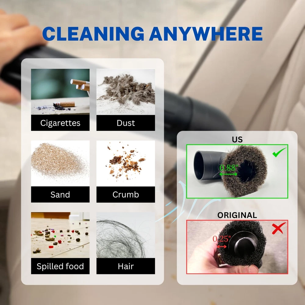 ๐[Important] Only fit Wet/Dry vacs using 2 1/2 inch accessories . It does not fit vacs using 1 1/4'', 1 1/2'' or 1 7/8'' accessories (Please measure your vacuum hose/wand diamter before purchasing) -Dust Brush Attachments for Vacuums: Fits most vacuum hoses or wands with a 2-1/2-inch diameter. -Enhance Dust Collection Efficiency: 2-1/2-inch diameter vacuum attachments allows for larger sized debris collection and maximum airflow. -Efficient Dust Removal: Soft bristles effectively lift and trap dust and debris, making it ideal for delicate surfaces like blinds, furniture, and upholstery. -Versatile Cleaning: Perfect for a variety of surfaces, including car interiors, shelves, and vents, providing a thorough and gentle clean every time. ๐[Important] Only fit Wet/Dry vacuums using 2 1/2 inch accessories . It does not fit vacs using 1 1/4'', 1 1/2'' or 1 7/8'' accessories (Please measure your vacuum hose/wand diamter before purchasing) Dust Brush Attachments for Vacuums: Fits most vacuum hoses or wands with a 2-1/2-inch diameter. Enhance Dust Collection Efficiency: 2-1/2-inch diameter vacuum attachments allows for larger sized debris collection and maximum airflow. Efficient Dust Removal: Soft bristles effectively lift and trap dust and debris, making it ideal for delicate surfaces like blinds, furniture, and upholstery. Versatile Cleaning: Perfect for a variety of surfaces, including car interiors, shelves, and vents, providing a thorough and gentle clean every time.