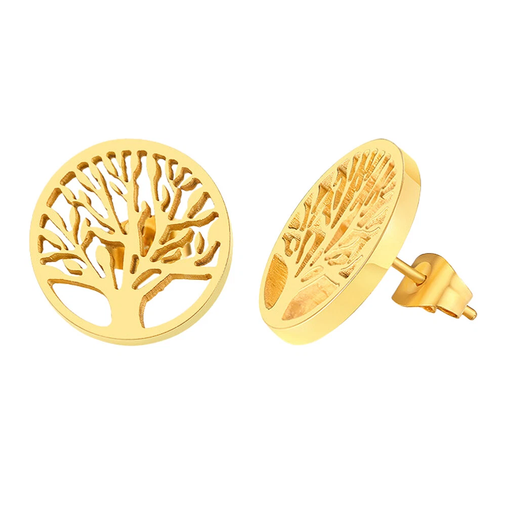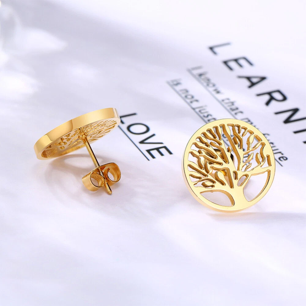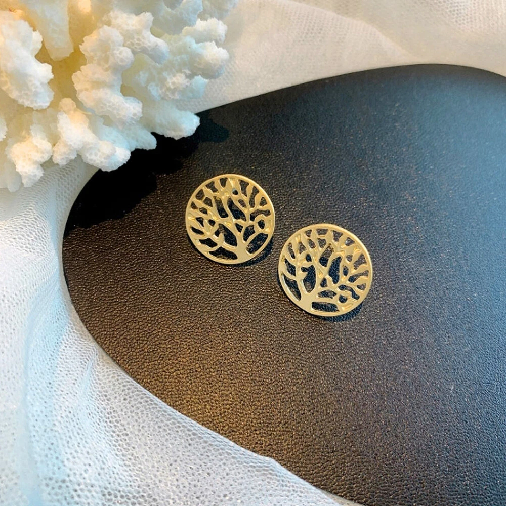 Round Earring Studs Round Piercing Earings Life Tree Shaped Ear Stud