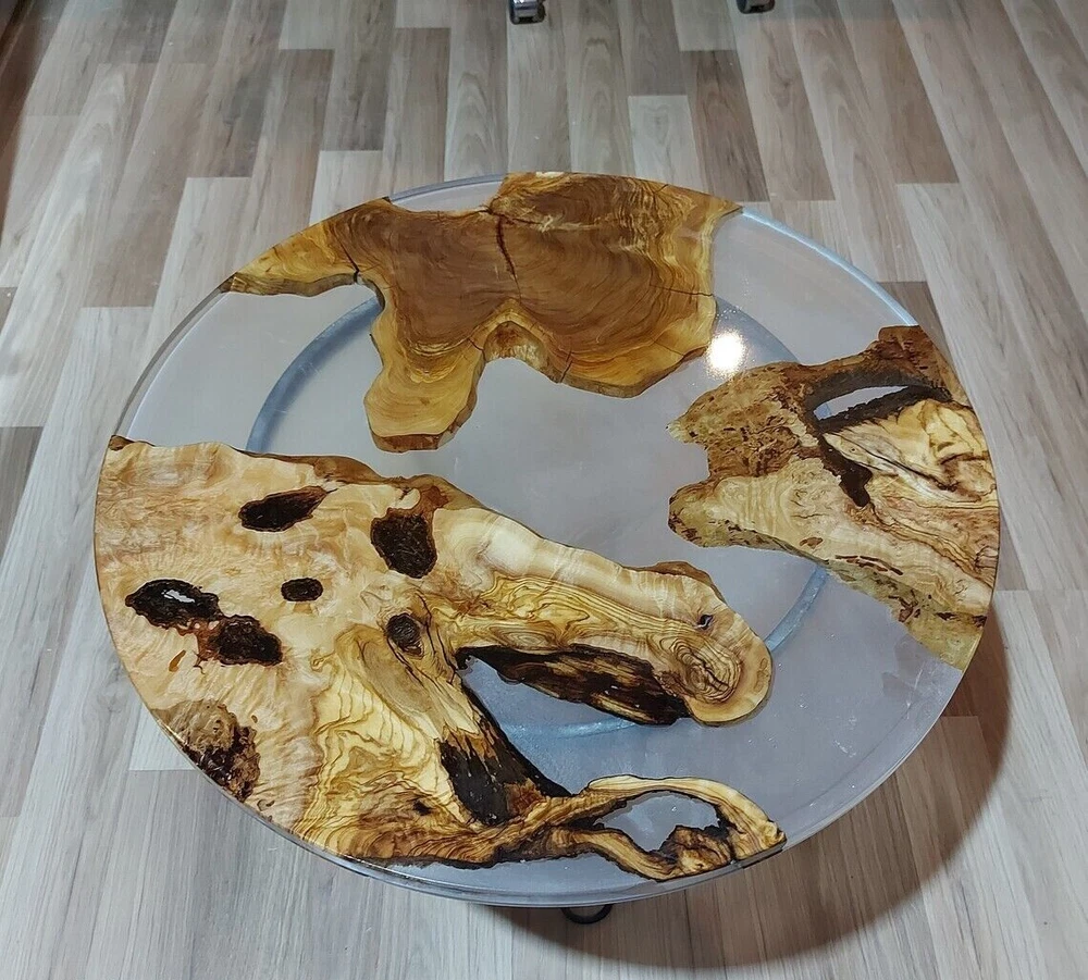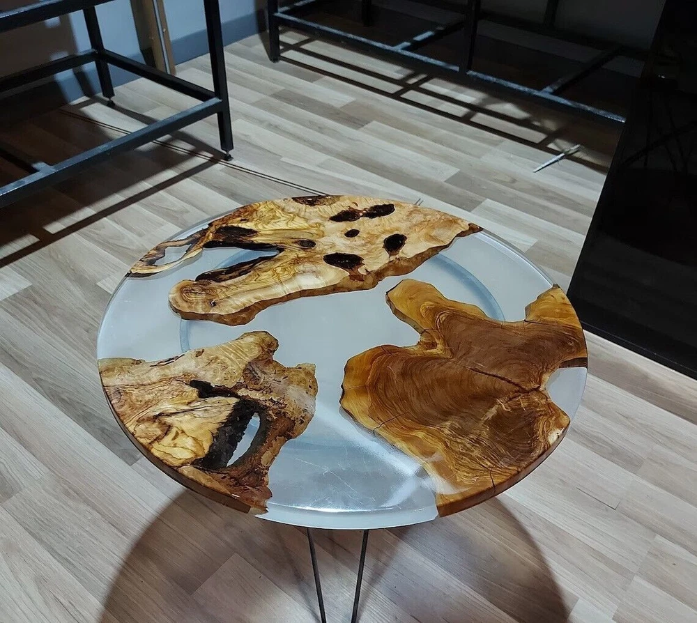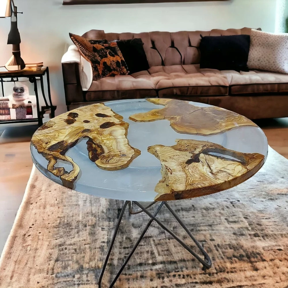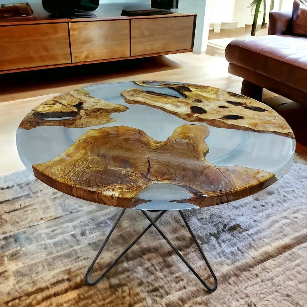 Round Epoxy Resin and Wooden Coffee Table , Wood Epoxy Resin Coffee Table Gifts