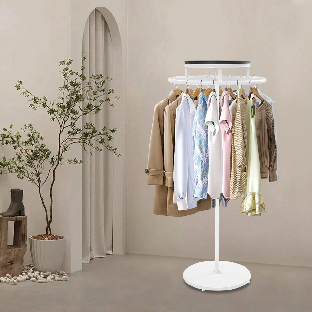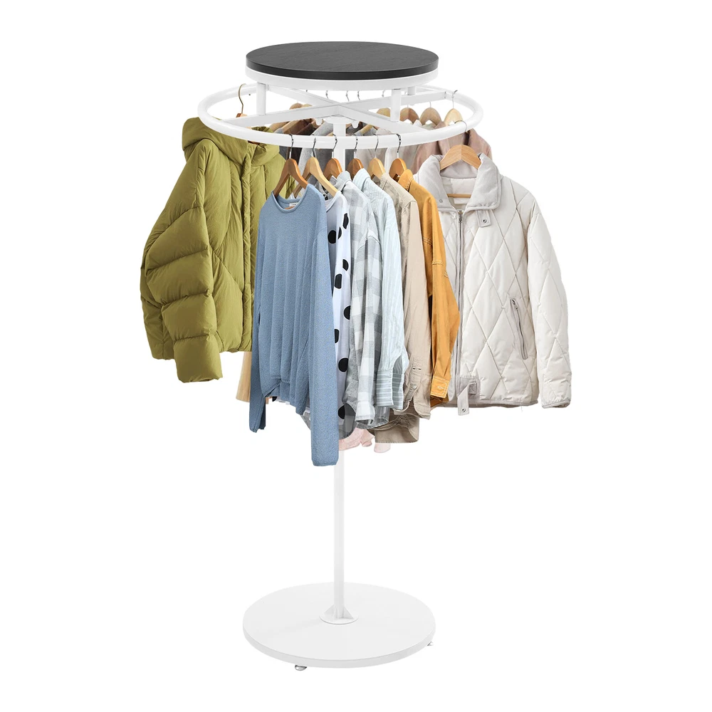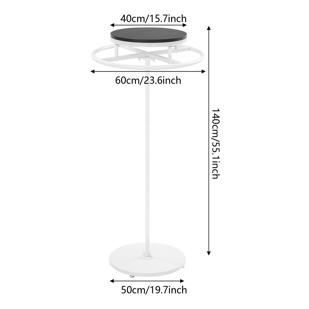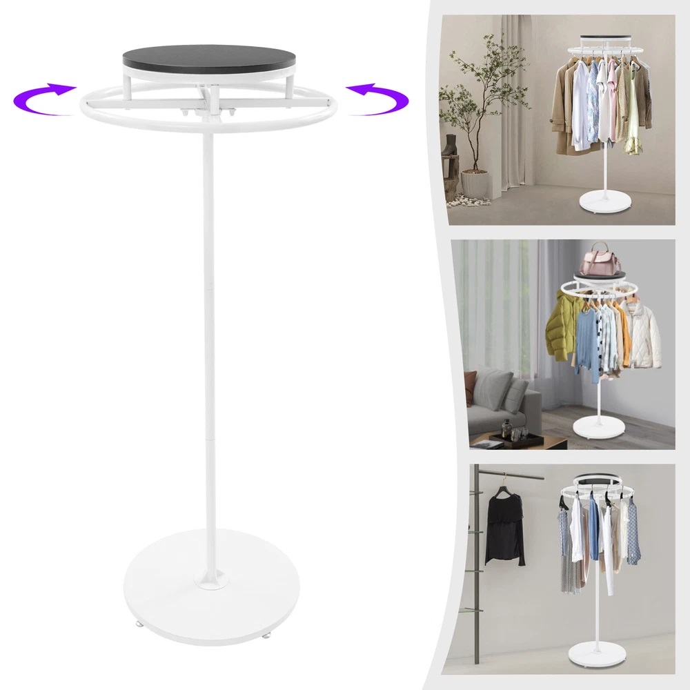 Round Clothing Rack Floor Standing Clothes Hanging Rack Garment Display Description Description Are you still struggling with disorganized clothing arrangements? Our premium clothing display rack is here to solve your problem. Crafted from premium materials and designed with exquisite craftsmanship, it offers both sturdiness and durability. It can provide enough storage space for your various clothes. With its generous appearance, it can embellish your clothing store. In short, it will be a display and storage assistant, creating high sales for you. Key Features High-class Material: This product is made of wood and iron with a high-temperature baking paint process, which is impact-resistant, rust-proof, and not easy to deform, ensuring long-term use. Wide Display Space : The 23.6-inch diameter round rack and open structure provide plenty of space for you to hang more coats, dresses, and other apparel (not included) to make the room more neat and organized. Ideal Height: The 55.1-inch height design allows you to hang longer gowns and dresses, effectively preventing clothes from dragging on the floor, while reducing wrinkles and keeping clothes in good shape. 360° Rotation: This design allows you to easily access your clothes without struggling to find them, saving time and energy. Thoughtful Design: The top wooden board can be used for placing signs, shoes, handbags, and other items, maximizing the use of space and adding more convenience to your clothing store. Easy to Clean: Thanks to its smooth surface and simple construction, you can easily clean it with a damp rag (not included)! Fashionable Appearance: The product adopts elegant color matching and smooth line design, which shows the fashionable and generous temperament, and easily integrates into the environment of all kinds of clothing stores and enhances the taste of the stores. Simple Installation: This product is simple in structure, equipped with complete accessories and a n English installation diagram, and easy to install. You can finish the installation by yourself. Buy with Confidence: We stand behind all our guests and look forward to assisting you with your purchase. It is our pleasure to answer your confusion and questions. The end of the story between us is not "we sell and you buy". Details Stable B ase: The large round base (diameter: 19.7in ) increases the contact area and provides stable support. In addition, 4 adjustable foot pads can adapt to uneven floors and ensure stable placement of this product without easily wobbling or sliding. Rounded Edges: Rounded and smooth edges effectively prevent your clothes from being scratched, taking good care of every garment. Application It can used to hang various clothing and scarves. It is suitable for clothing stores, boutiques, children's clothing stores, bra stores, retail stores, homes, do rms, etc. It can not only hang women's, men's, and children's clothes, but also towels, scarves, and other items such as bags, and umbrellas. Specifications Color: Black, White Shape: Round Style: Modern Material: Iron, Wood Process: High-temperature Baking Paint Mount Type: Free Standing Assembly Required: Yes 360° Rotatable: Yes Base Diameter: 50cm/19.7in Product Height: 140cm/55.1in Wood Board Diameter: 40cm/15.7in Wood Board Thicknesses: 16mm/0.63in Rack Diameter: 60cm/23.6in Package Size: 62.5*62*14cm/ 24.61*24.41*5.51in Gross Weight: 7.5kg/ 16.53 lbs Net Weight: 7.13kg/ 15.72 lbs Package Included 1* Clothes Display Rack 4* Foot Pads 1* English Installation Diagram All Accessories for Installation Notes Please check the product size before ordering to make sure it fits your needs. Please note that this product only includes a rack without clothes. Please allow the slight color difference caused by the shooting light and 1-3cm error due to manual measurement, and make sure you do not mind before you order. Payment Delivery details Terms of sales About us Contact us Payment We accept ebay payment 。 Fees such as import duties, taxes are not included in the item price or shipping costs. These charges are the buyer's responsibility. Delivery details Shipping: 2-9 working days to: USA Terms of sales We maintain high standards of excellence and strive for hundred percent customer satisfaction. Feedback is very important to us. We hope that you contact us immediately before you give neutral or negative feedback, so that we can address your concerns. It is impossible to address issues if we do not know about them! About us Your satis faction is our ultimate goal. We work hard to earn your trust and future business. Our certified technicians have tested each item before shipping. The unit comes with 1 year limited warranty on all manufacturing defects. a) If you receive a defective item, you may return it or ask for a discount. Please contact us within 14 days after you receive the package. b) What you returned must be intact and in its original packaging as re? u. Customer is responsible for shipping costs of the returned item. c) We will cover the cost of shipping back t with the shipping rate indicated in the registration page. We will send you a new unit or refund the full payment you paid. Thank you. Contact us Business Hour Business Hour: Monday To Friday: 8:30 AM to 5:00 PM (Beijing China time) Due to time zones, our reply to your questions may not be immediately. But within above working time, we will reply your email within 24 hours. If it's non-workdays, please kindly be patient and wait till Monday. Please contact us with ebay message. Please feel free to contact us if you have any questions. Monday To Friday: 8:30 AM to 5:00 PM (Beijing China time) Due to time zones, our reply to your questions may not be immediately. But within above working time, we will reply your email within 24 hours. If it's non-workdays, please kindly be patient and wait till Monday. Please contact us with ebay message. Please feel free to contact us if you have any questions. Manufacturer Warranty 3 