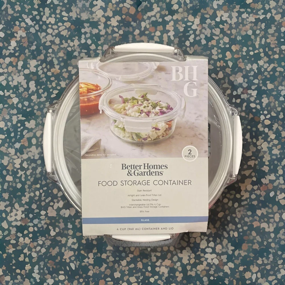 The Better Homes & Gardens Round Glass Food Storage Container is a set that includes one, round container with snap-on Tritan lid. Each container has a capacity of 960 ml and measures 5 inches in diameter, 3 inches in height, and 3 inches in depth. The containers are made of glass and the lid of a Tritan material. Perfect for storing food items, these containers are designed to keep your kitchen organized and your food fresh. Brand new and never used - stain resistant - air tight and leak proof tritan lid - bpa free