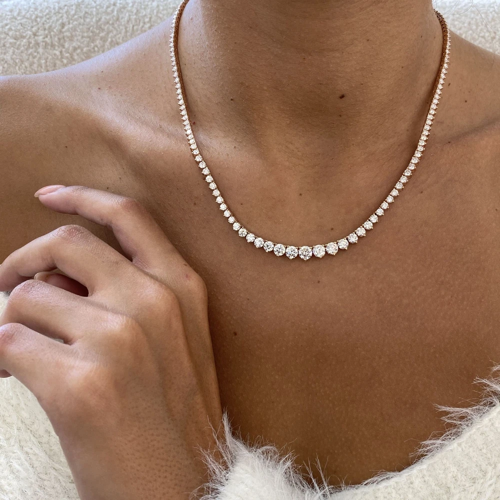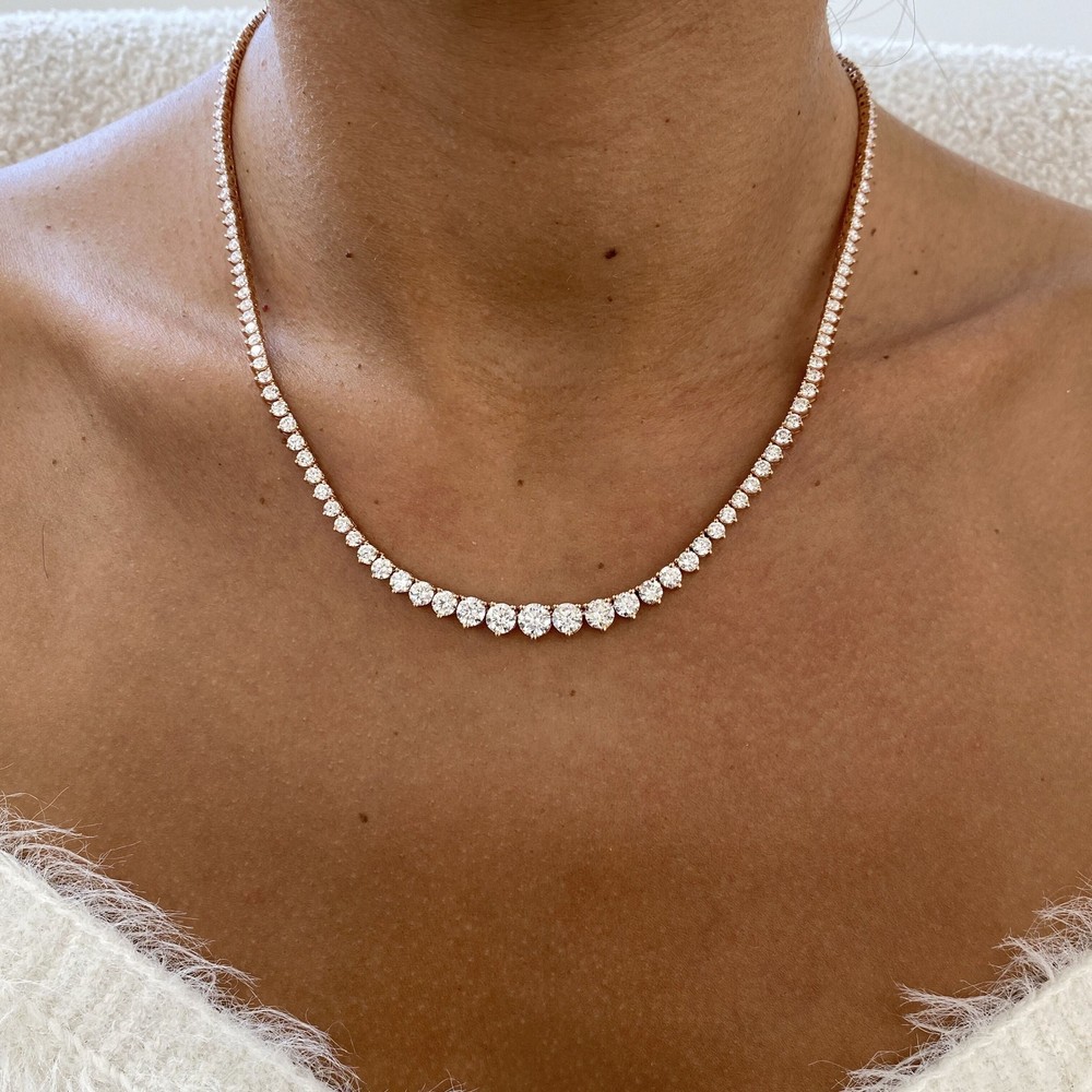 14K Rose Gold Tennis Necklace Round Labcreated Diamond 9.6ct F/VS Bookmark Our Store Ask seller a question Engagement Rings Diamond Solitaire Rings Diamond Rings with Accents Diamond Ring Sets Wedding Bands Earrings Pendants Bracelets Monthly Deals MENU Diamond Solitaire Rings Diamond Rings with Accents Diamond Ring Sets Wedding Bands Earrings Pendants Bracelets Monthly Deals Bookmark our store Follow This Seller Ask Seller a Question 14K Rose Gold Tennis Necklace Round Labcreated Diamond 9.6ct F/VS Item Includes FREE Certificate of Authenticity FREE Worldwide Shipping FREE Elegant Gift Box Ask Seller a Question Necklace Details Setting Style: Prong Total Carat Weight: 9.6 Carat Metal Purity and Type: 14K Rose Gold Approx. Gold Weight: 19.30 Available Size: [PF_sizes-txt] Certificate Lab: GGL Inventory Number: EK037N02-R Stones Specifications Stone Type: Lab-grown Diamond Shape: Round Diamond Carat Weight: Carat Color / Clarity: F / VS Treatment: Not-Enhanced Side Stones Stones Type: Diamond Shape: ROUND Diamonds Carat Weight: 9.6 Color / Clarity: F / VS Treatment: Not-Enhanced Product Description 14K Rose Gold Tennis Necklace Round Labcreated Diamond 9.6ct F/VS Monthly Deals Best Prices on eBay. Up to 70% Off Retail Upgrade Options 18K Yellow Gold OR 18K White Gold Free Resize Contact us if you need size customization Round Princess Cushion Oval Asscher Emerald Pear Radiant Marquise Heart Solitaire Rings Rings with Accents Wedding Bands Diamond Ring Sets Diamond Earrings Diamond Bracelets Diamond Pendants Montly Deals Payment & Shipping Get your purchases delivered to your doorstep for free! Most items will be delivered within 30 days. Return Policy We guarantee your satisfaction and offer a 60-day money-back return (or exchange) policy. If, for any reason, you are unsatisfied with your purchase, please contact us first before opening up a case or leaving feedback so that we can make things right! We are here to assist YOU! Appraisal {{APPRAISAL}} About us We are Glam&Gems, a diamond jewelry company based in New York. We offer our own brand of products. For decades, our company has been manufacturing beautiful and high-quality jewelry. Our jewelry can be found in many of the most prestigious jewelry stores on Fifth Avenue and at luxury stores worldwide. Our specialised production of lab diamonds, which was our first step in the process, has made us stop using non-ethical diamonds that harm the environment and the planet. We produce ethical, conflict-free, high-quality laboratory diamonds at the highest level for you today. Glam&Gems also produces your diamonds and designs your jewelry. Our goal is to provide you with the highest quality jewelry for your deepest satisfaction See Other Items Newsletter Signup Follow This Seller Ask Seller a Question GIA Gemological Institute Of America IGG Jewelry Appraisal IGI All Imagery & Content © 2017 Diamonds Forever Boutique | Listing Template by Glam & Gems
