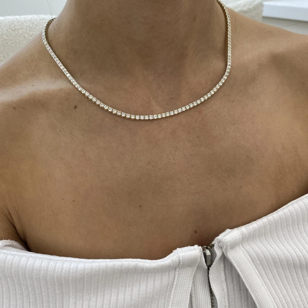 14K Yellow Gold Tennis Necklace Round Labcreated Diamond 11.6ct F/VS Bookmark Our Store Ask seller a question Engagement Rings Diamond Solitaire Rings Diamond Rings with Accents Diamond Ring Sets Wedding Bands Earrings Pendants Bracelets Monthly Deals MENU Diamond Solitaire Rings Diamond Rings with Accents Diamond Ring Sets Wedding Bands Earrings Pendants Bracelets Monthly Deals Bookmark our store Follow This Seller Ask Seller a Question 14K Yellow Gold Tennis Necklace Round Labcreated Diamond 11.6ct F/VS Item Includes FREE Certificate of Authenticity FREE Worldwide Shipping FREE Elegant Gift Box Ask Seller a Question Necklace Details Setting Style: Prong Total Carat Weight: 11.6 Carat Metal Purity and Type: 14K Yellow Gold Approx. Gold Weight: 15.84 Available Size: 15.5",16",16.5",17" Inventory Number: T1-2.7N-Y Stones Specifications Stone Type: Lab-grown Diamond Diamond Carat Weight: Carat Color / Clarity: F / VS Treatment: Not-Enhanced Product Description 14K Yellow Gold Tennis Necklace Round Labcreated Diamond 11.6ct F/VS Monthly Deals Best Prices on eBay. Up to 70% Off Retail Upgrade Options 18K Yellow Gold OR 18K White Gold Free Resize Contact us if you need size customization Round Princess Cushion Oval Asscher Emerald Pear Radiant Marquise Heart Solitaire Rings Rings with Accents Wedding Bands Diamond Ring Sets Diamond Earrings Diamond Bracelets Diamond Pendants Montly Deals Payment & Shipping Get your purchases delivered to your doorstep for free! Most items will be delivered within 30 days. Return Policy We guarantee your satisfaction and offer a 60-day money-back return (or exchange) policy. If, for any reason, you are unsatisfied with your purchase, please contact us first before opening up a case or leaving feedback so that we can make things right! We are here to assist YOU! Appraisal {{APPRAISAL}} About us We are Glam&Gems, a diamond jewelry company based in New York. We offer our own brand of products. For decades, our company has been manufacturing beautiful and high-quality jewelry. Our jewelry can be found in many of the most prestigious jewelry stores on Fifth Avenue and at luxury stores worldwide. Our specialised production of lab diamonds, which was our first step in the process, has made us stop using non-ethical diamonds that harm the environment and the planet. We produce ethical, conflict-free, high-quality laboratory diamonds at the highest level for you today. Glam&Gems also produces your diamonds and designs your jewelry. Our goal is to provide you with the highest quality jewelry for your deepest satisfaction See Other Items Newsletter Signup Follow This Seller Ask Seller a Question GIA Gemological Institute Of America IGG Jewelry Appraisal IGI All Imagery & Content © 2017 Diamonds Forever Boutique | Listing Template by Glam & Gems