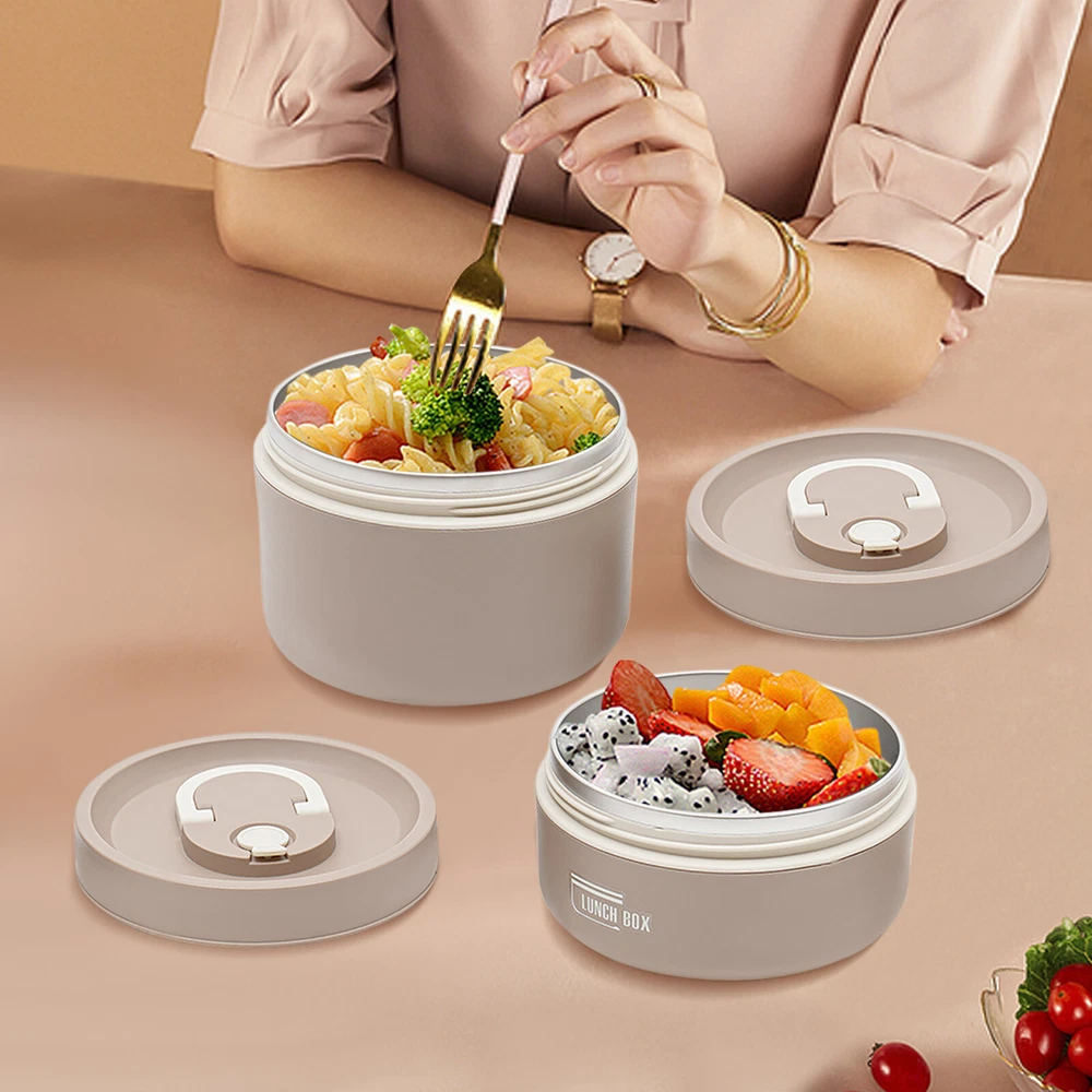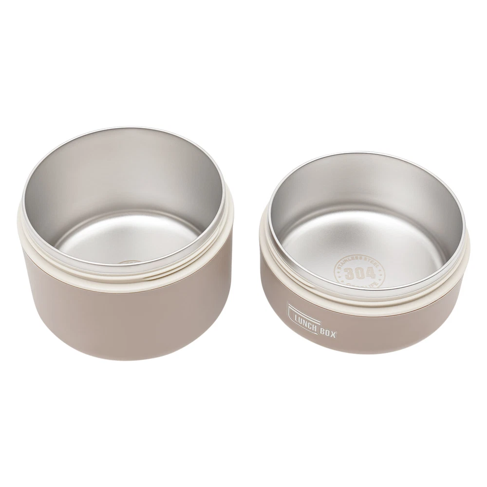 Application It enables you to prepare various foods for work, school, picnics, or camping, as well as nutritional meals for children or visiting patients. Specifications Color: Brown /Beige/Blue Shape: Round Style: Modern Number of Pieces: 2 Assembly Required: No Material: 304 Stainless Steel, PP, PU Foam Insulation Bag Material: Oxford Cloth, Pearl Cotton, PVC Aluminum Plated Film Heat Preservation Time(With the Insulation Bag): About 2.5-3 Hours(Food), 4 Hours(Boiled Water) Capacity: 620ml/0.56Qt (Bigger One), 420ml/ 0.38Qt (Smaller One) Gross Weight: 0.5kg/1.1 lbs Net Weight: 0.41kg/0.9 lbs Overall Product Size(D*H): 13.5*18cm/5.31*7.08 in Packaging Size: 19*14*14cm/7.48*5.51*5.51 in Package Included 2* Lunch Boxes 1* Insulation Bag Round Lunch Box Portable Insulated Lunch Container Set Stainless Steel Bento Box Description This lunch box is a good choice when you want to eat healthier or enjoy different foods more easily at work. It is made of high-quality materials, sturdy, safe, and durable. With a sealed lid, it is leak-proof , so you can use it confidently. Its lightweight, compact size and portable handles allow you to easily take it around. With it, you can prepare delicious food for your kids, family, and loved ones. Key Features Sturdy and Durable: The product is made of high-quality 304 stainless steel and PP, using a one-color silkscreen process, with high strength, wear resistance, non-toxic , and long service life Powerful Insulation: Its stainless steel inner liner, PU foam interlayer, and thermal insulation bag allow it to keep food warm for up to 2.5-3 hours and keep boiled water for 4 hours, so you don't have to worry about the food quickly becoming cold. Large Capacity: The bigger bowl can hold up to 0.56Qt and the smaller bowl can hold up to 0.38Qt of meals, catering for all your meal sizes. You can also feel free to mix and match, using different sizes of bowls to portion out rice, stir-fries, stews, fruits, and more to get a nutritionally balanced diet. Easy to Carry & Store: Its lightweight ( 0.9 lbs ), compact size ( 5.31*7.08 in ), and practical handles allow you to easily store and carry it to different places. You can keep your fitness and nutrition goals by using this item to take healthy meals and snacks wherever you go. Sealed and Spill-pro of : The sealed lid with silicone sealing ring and the design of spiral tightening not only prevents the soup from spilling but also enhances the heat preservation effect. Effortless Cleaning: The simple structure, removable lid, and smooth surface allow you to easily clean it with a wet wipe, water, and mild cleaning agent . Space-saving: Its stackable design allows you to place them on top of each other, saving you even more space. Beautiful Appearance: The pleasing brown tone with smooth lines and simple style make this item modern and fashionable. Nice Gift: This practical and beautiful product is a great holiday or housewarming gift for family, friends, and lovers so that they can enjoy a more convenient life. Details Ventilation Hole: It makes it easy to open the lid when the pressure inside the box is high. Double Zip Design: It is convenient for you to open and close the insulation bag . Application It enables you to prepare various foods for work, school, picnics, or camping, as well as nutritional meals for children or visiting patients. Specifications Color: Brown /Beige/Blue Shape: Round Style: Modern Number of Pieces: 2 Assembly Required: No Material: 304 Stainless Steel, PP, PU Foam Insulation Bag Material: Oxford Cloth, Pearl Cotton, PVC Aluminum Plated Film Heat Preservation Time(With the Insulation Bag): About 2.5-3 Hours(Food), 4 Hours(Boiled Water) Capacity: 620ml/0.56Qt (Bigger One), 420ml/ 0.38Qt (Smaller One) Gross Weight: 0.5kg/1.1 lbs Net Weight: 0.41kg/0.9 lbs Overall Product Size(D*H): 13.5*18cm/5.31*7.08 in Packaging Size: 19*14*14cm/7.48*5.51*5.51 in Package Included 2* Lunch Boxes 1* Insulation Bag Notes Please note that this product cannot be heated in a microwave oven and is also recommended not to be cleaned in a sterilizer or dishwasher. Please check the size carefully before ordering. Please wash the inside of the lunch box with a soft cloth and detergent diluted with warm water before first use. Please do not use alkaline bleach, metal cloth, chemical cloth, etc. Please clean it and keep it dry for a long time use. Please do not contact with salt-containing substances (or other acidic or alkaline substances) such as sauces and soups for a long time to avoid rusting. Please allow the slight color difference caused by the shooting light and 1-3cm error due to manual measurement, and make sure you do not mind before you order. Payment Delivery details Terms of sales About us Contact us Payment We accept ebay payment 。 Fees such as import duties, taxes are not included in the item price or shipping costs. These charges are the buyer's responsibility. Delivery details Shipping: 2-9 working days to: USA Terms of sales We maintain high standards of excellence and strive for hundred percent customer satisfaction. Feedback is very important to us. We hope that you contact us immediately before you give neutral or negative feedback, so that we can address your concerns. It is impossible to address issues if we do not know about them! About us Your satis faction is our ultimate goal. We work hard to earn your trust and future business. Our certified technicians have tested each item before shipping. The unit comes with 1 year limited warranty on all manufacturing defects. a) If you receive a defective item, you may return it or ask for a discount. Please contact us within 14 days after you receive the package. b) What you returned must be intact and in its original packaging as re? u. Customer is responsible for shipping costs of the returned item. c) We will cover the cost of shipping back t with the shipping rate indicated in the registration page. We will send you a new unit or refund the fu