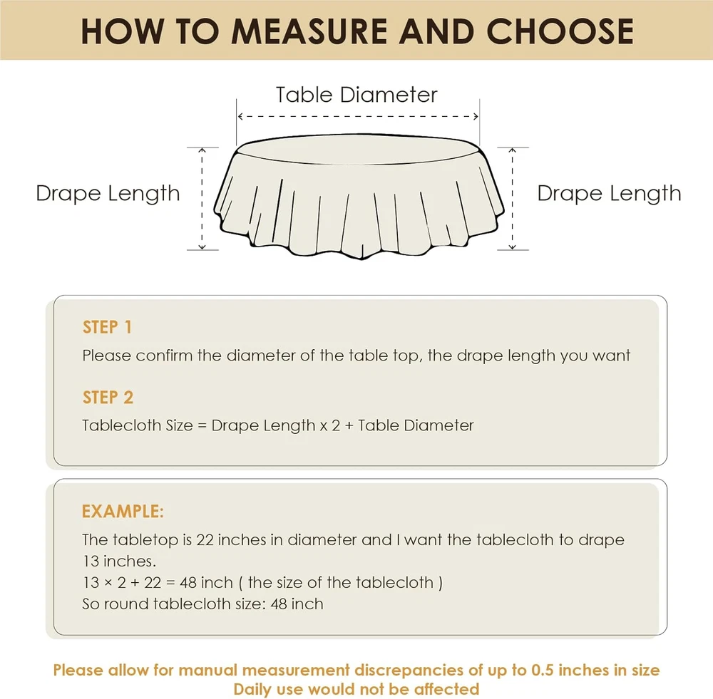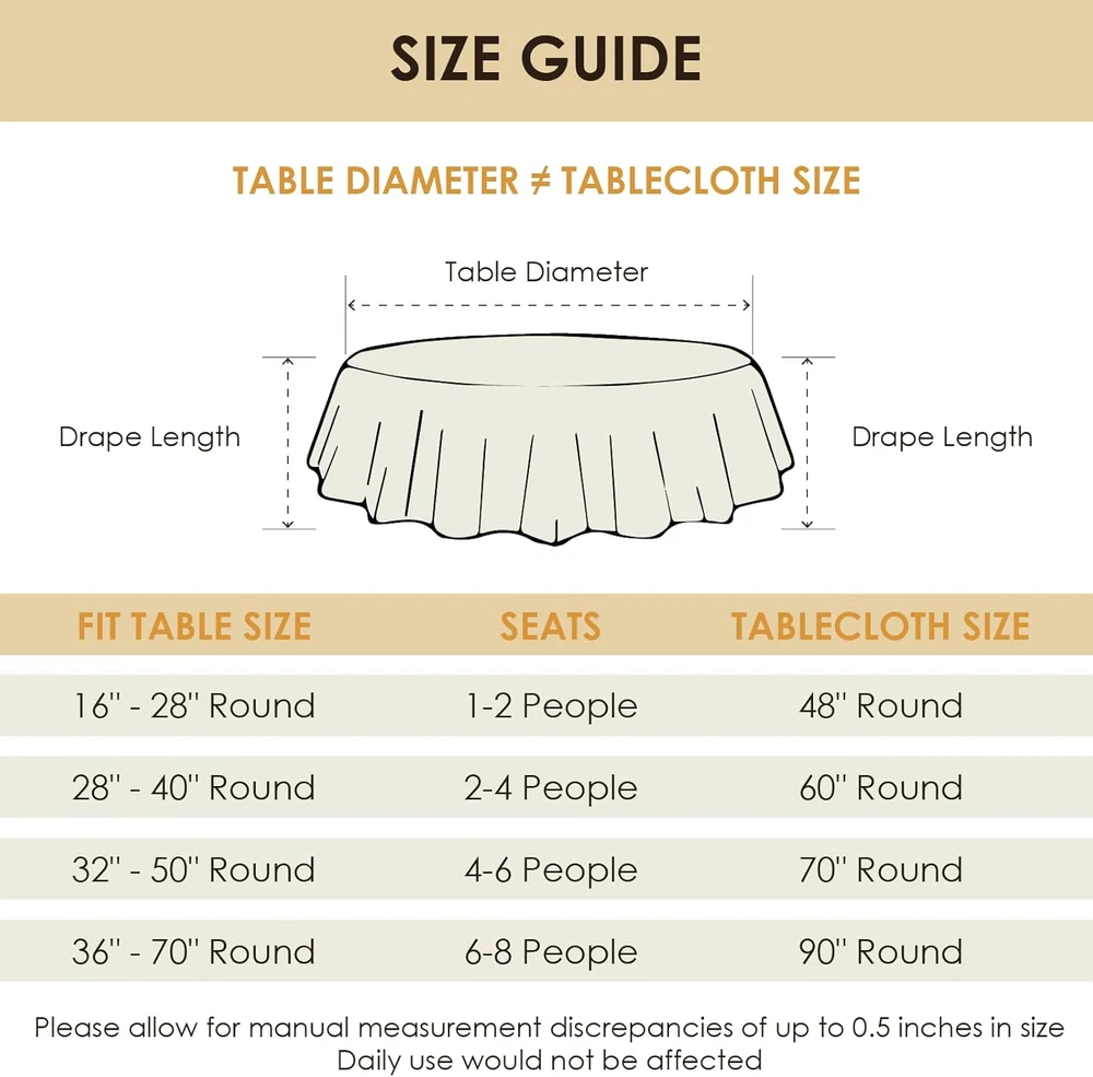 Round Tablecloth Water and Stain Resistant Washable Table Cloth Selected Wrinkle