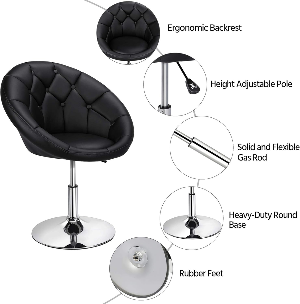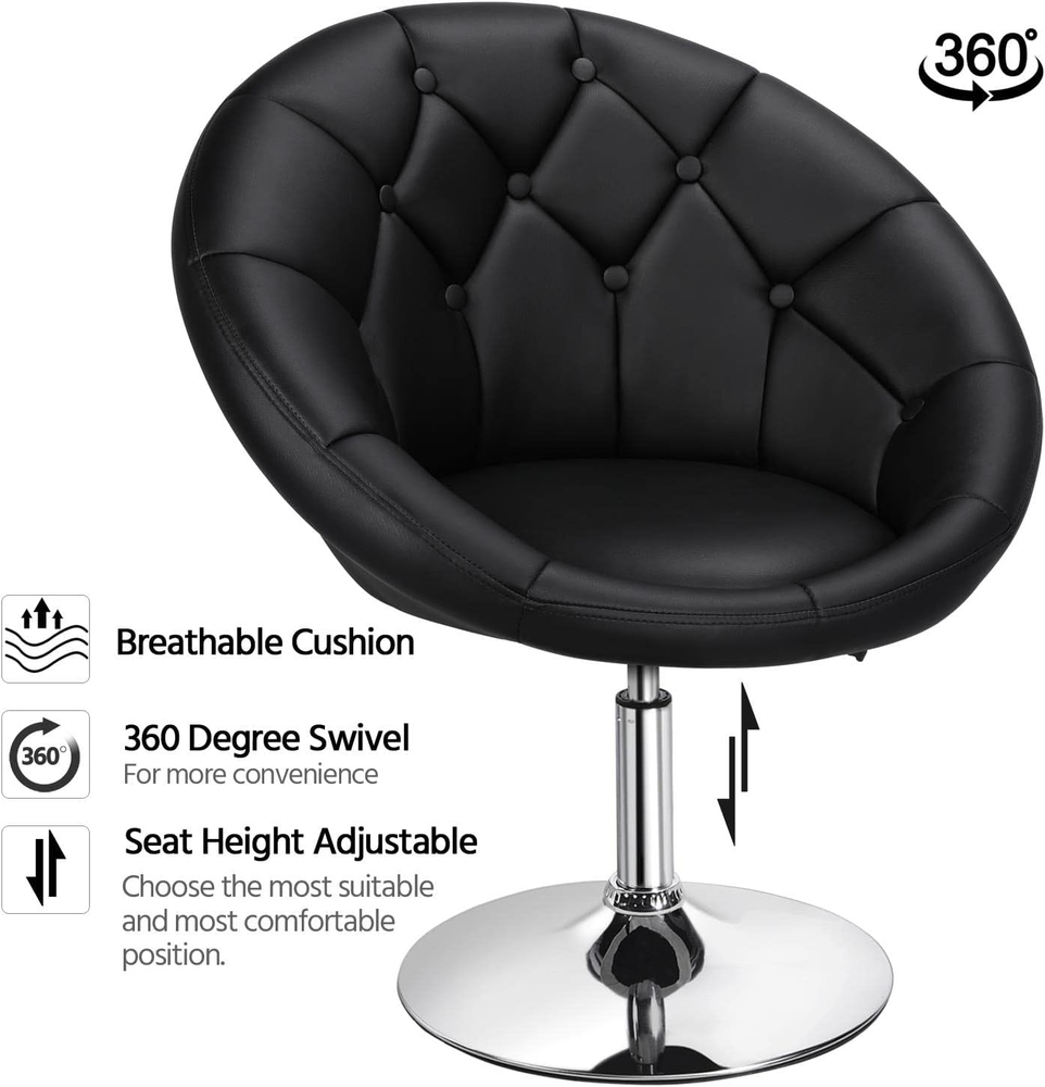 Seat Back Interior Height: 14.2 Inches Model Name: Accent Chair Brand: Does not apply Furniture Finish: Leather Room Type: Kitchen, Living Room, Dining Room Shape: Round Cushion Style: Tufted Is Foldable: No Pattern: Solid Form Factor: 360-degree,Contemporary,Modern,Upholstered Is Customizable: No Age Range (Description): Adult Material Type: Faux Leather Item Height: Does not apply Theme: Modern Frame Material Engineered Wood: Seat Material Type Faux Leather UPC: 7445001213289 Item Weight: 16.09 pounds Item Width: Does not apply Back Style: Solid Back Furniture base movement: Swivel Unit Count: 1 Count Number of Height Positions: 4 Fill Material: Foam Country of Origin: China Arm Style: Arm Rest Finish Type: Polished Surface Recommendation: Hard Floor Color: Does not apply Recommended Uses For Product: Office, Dining Material Faux Leather: Item Weight 16.09 Pounds Weight: 16.09 Pounds Leg Style: Tapered Leg Maximum Weight Recommendation: 276 Pounds Special Feature: Portable, Adjustable Height, Arm Rest Included Components: User Manual Size: 23.5"D x 28"W x 36"H gtin13: 7445001213289 Type: Does not apply Product Dimensions: 23.5"D x 28"W x 36"H Item model number: YTua310005001 Seat Height: 18 Inches Style: Modern Item Length: Does not apply Indoor/Outdoor Usage: Indoor Seat Depth: 17.7 inches
