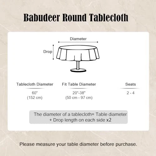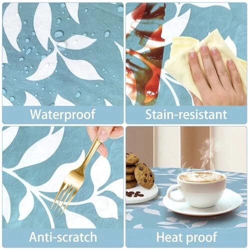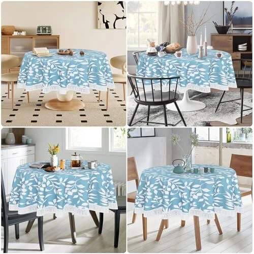 Return Policy Fast Delivery Trusted seller Round Vinyl Tablecloth, 60 Inch Round Tablecloth with Flannel Backing, Waterproof Stain-Resistant PVC Table Cloth Covers with Lace Trim for Round Table (Blue Leaves) Product Description FEATURES: Crafted from high-quality vinyl material, our vinyl round tablecloth are long-lasting and reusable. Measuring 60" x 60", they are large enough to fit 20"- 38" diameter round tables. Not only protect your table from being soiled by food, but also create an elegant festival atmosp. QUALITY MATERIAL: These reusable tablecloths are made of quality vinyl material, waterproof and stain-resistant, sturdy and safe to use, not easy to tear and fade. Flannel backing can prevent it from slipping or moving. A perfect tablecloth to protect and decorate your table in kitchen room, dining room, patio, etc. STYLISH PATTERN WITH LACE HEM: Designed with different beautiful patterns, they bring a strong visual effect which can add attractiveness to your home and create an elegant festival / party atmosp, also great for daily use. The exquisite lace trim also makes your table setting look more upscale. EASY TO CLEAN: When these picnic table cover gets dirty, you can use a wet cloth or sponge with mild soap to wipe them gently and it will get clean again. Warm Tip: Do not iron or machine wash. WIDE USE: The vinyl tablecloths with flannel backing is applicable for any indoor and outdoor occasion either for decorative or functional use like party, holiday, baby showers, buffets, cafes, wedding, BBQ, camping and any other event. Shipping Returns Payment Shipping Shipping is FREE to all addresses other than APO/PO boxes in the lower 48 states. All our stock ships from US-based warehouses. Shipped via USPS or UPS (depending on location and package weight) Unless stated otherwise, all orders will ship within 24-72 hours of your payment being processed. Check our feedback to see the great reviews of FAST shipping we offer. Returns Seller does not accept returns Payment We currently accept payment via eBay managed payments only. Once payment is cleared, we will dispatch your shipment within 1-3 business days. Please refer to the "Shipping" tab for more information regarding shipping speed to your destination.