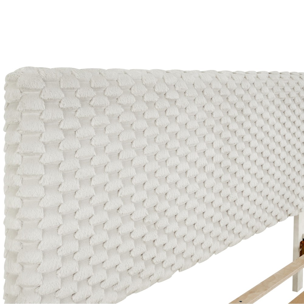 The Findlay 3-Piece Bedroom Set by Roundhill Furniture offers an exquisite combination of style and practicality for your home. Featuring a platform bed with a plush 3D upholstered headboard in a white dove color, it provides a layer of textural appeal. Constructed with a wooden frame and durable Plywood slats, the bed ensures reliable support and longevity. Two matching nightstands complete the set, each with a single drawer that offers a convenient storage option without compromising the sleek design. The natural wood grain finish brings a touch of organic beauty, making this set a captivating centerpiece for any bedroom decor. Upgrade your bedroom with the Findlay Collection today! Available in three size option: Twin, Full and Queen. No box spring required. Features: [3-PIECE SET]: Free Shipping Over $49.99* Details Roundhill Furniture Findlay 3-Piece Bedroom Set in White Dove Product Description: The Findlay 3-Piece Bedroom Set by Roundhill Furniture offers an exquisite combination of style and practicality for your home. Featuring a platform bed with a plush 3D upholstered headboard in a white dove color, it provides a layer of textural appeal. Constructed with a wooden frame and durable Plywood slats, the bed ensures reliable support and longevity. Two matching nightstands complete the set, each with a single drawer that offers a convenient storage option without compromising the sleek design. The natural wood grain finish brings a touch of organic beauty, making this set a captivating centerpiece for any bedroom decor. Upgrade your bedroom with the Findlay Collection today! Available in three size optionTwin, Full and Queen. No box spring required. Features: [3-PIECE SET] Set including one Platform Bed and Two Single-drawer Nightstands. No box spring required. [TIMELESS DESIGN & LUXURIOUS COMFORT] The headboard features a plush 3D upholstered design in white dove color, creating a sophisticated focal point that complements any decor style. The matching nightstand boasts a design that promises to elevate any decor, especially with the natural wood grain elements that make this set a standout in any space. [BUILT TO LAST] This set is expertly crafted and designed for long-lasting durability. The bed is meticulously constructed from high-quality MDF and Plywood slats, while the headboard and side panels are upholstered with breathable fabric and are well-padded. The nightstand is made from fine paper-laminated veneer, stands on a square metal base that marries visual appeal with reinforced stability. [INSTALLATION] Some assembly is required. All parts and instructions are included. Dimensions: Twin bed overall dimension43W x 78.75D x 41-45.50H Headboard43W x 3.25D x 45.50H. Footboard42W x 2.25D x 10.50H Side Rails76W x 1.25D x 6H Full bed overall dimension58.50W x 78.75D x 41-45.50H Headboard58.50W x 3.25D x 45.50H Footboard57.50W x 2.25D x 10.50H Side Rails76W x 1.50D x 6H Queen bed overall dimension65W x 85D x 41-45.50H Headboard65W x 3.25D x 45.50H Footboard64W x 2.25D x 10.50H Side Rails82.25W x 1.50D x 6H The height of the headboard not including the legs24.50 in. Height from the floor to the bottom of the side rail10.50 in. Nightstand17.75W x 17D x 24H in; Drawer17.75W x 14D x 6.75H in; Table top thickness1.5 in Kindly be aware that the color of the actual item may slightly differ from the photo due to variations in monitor display.