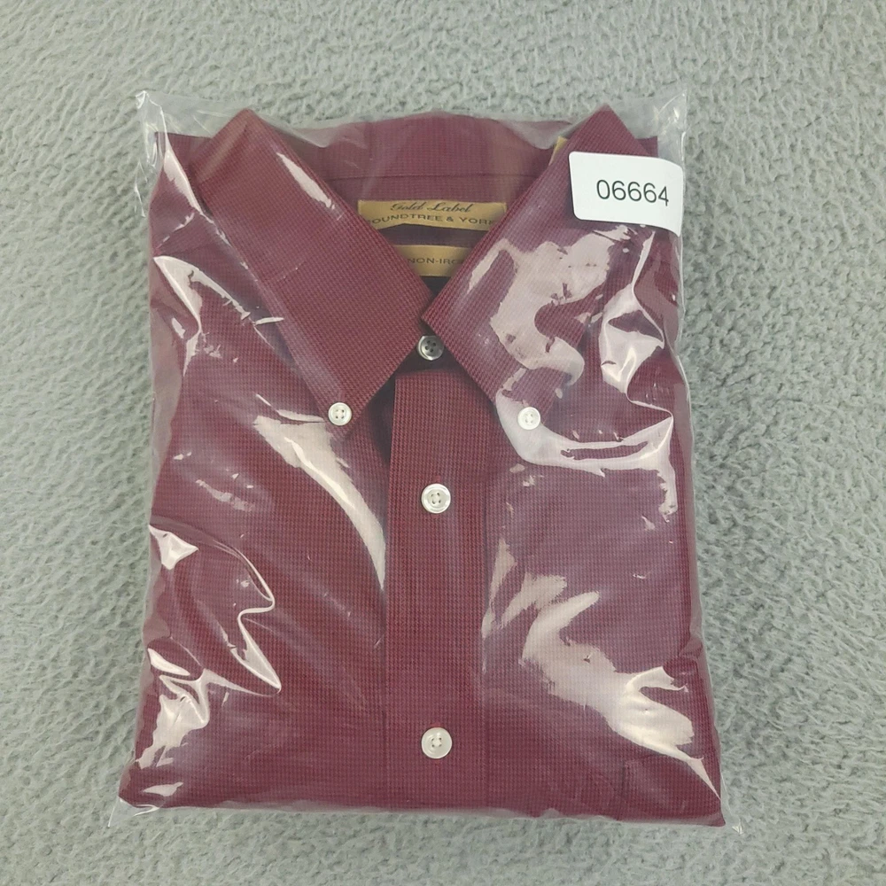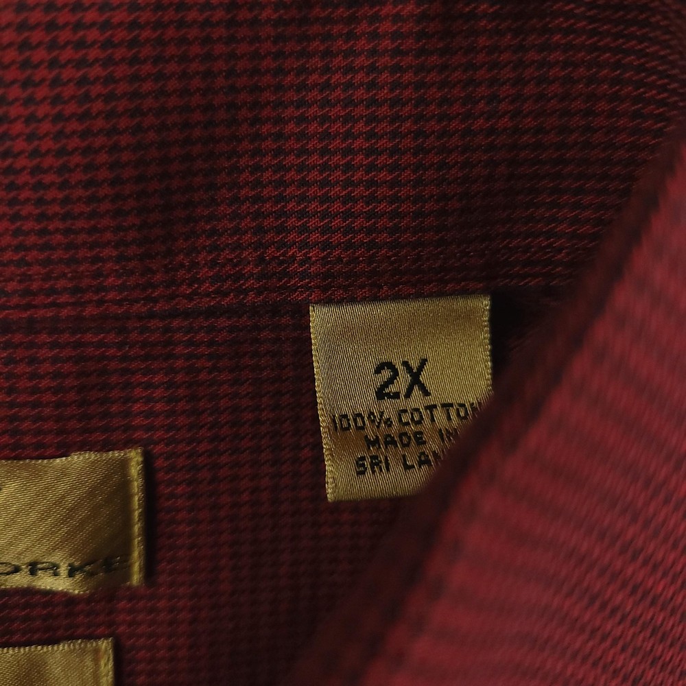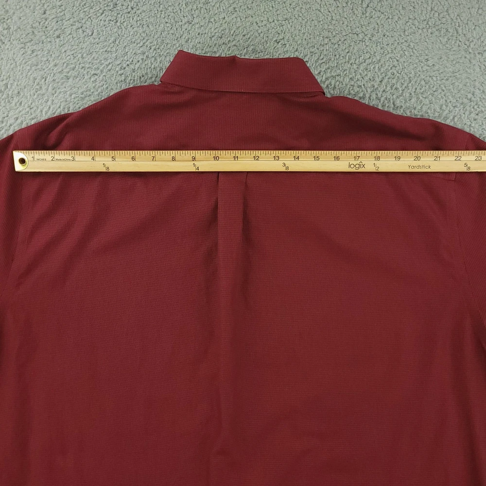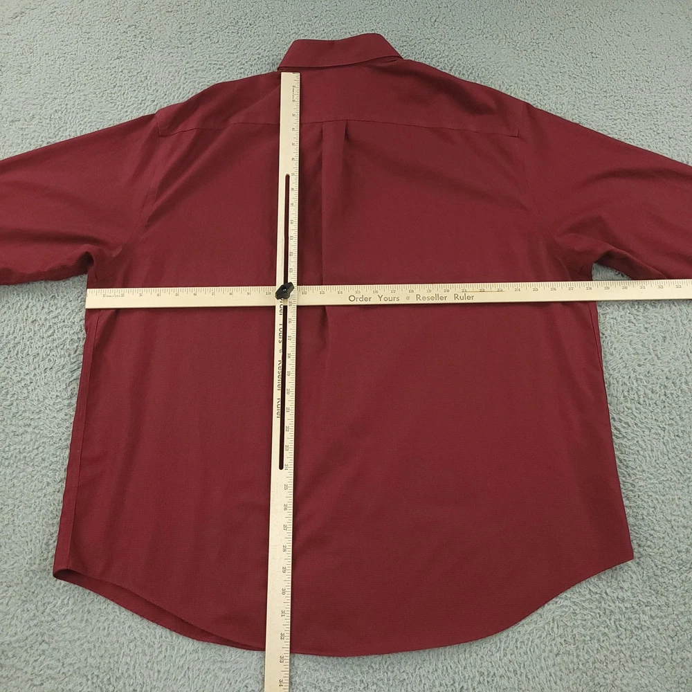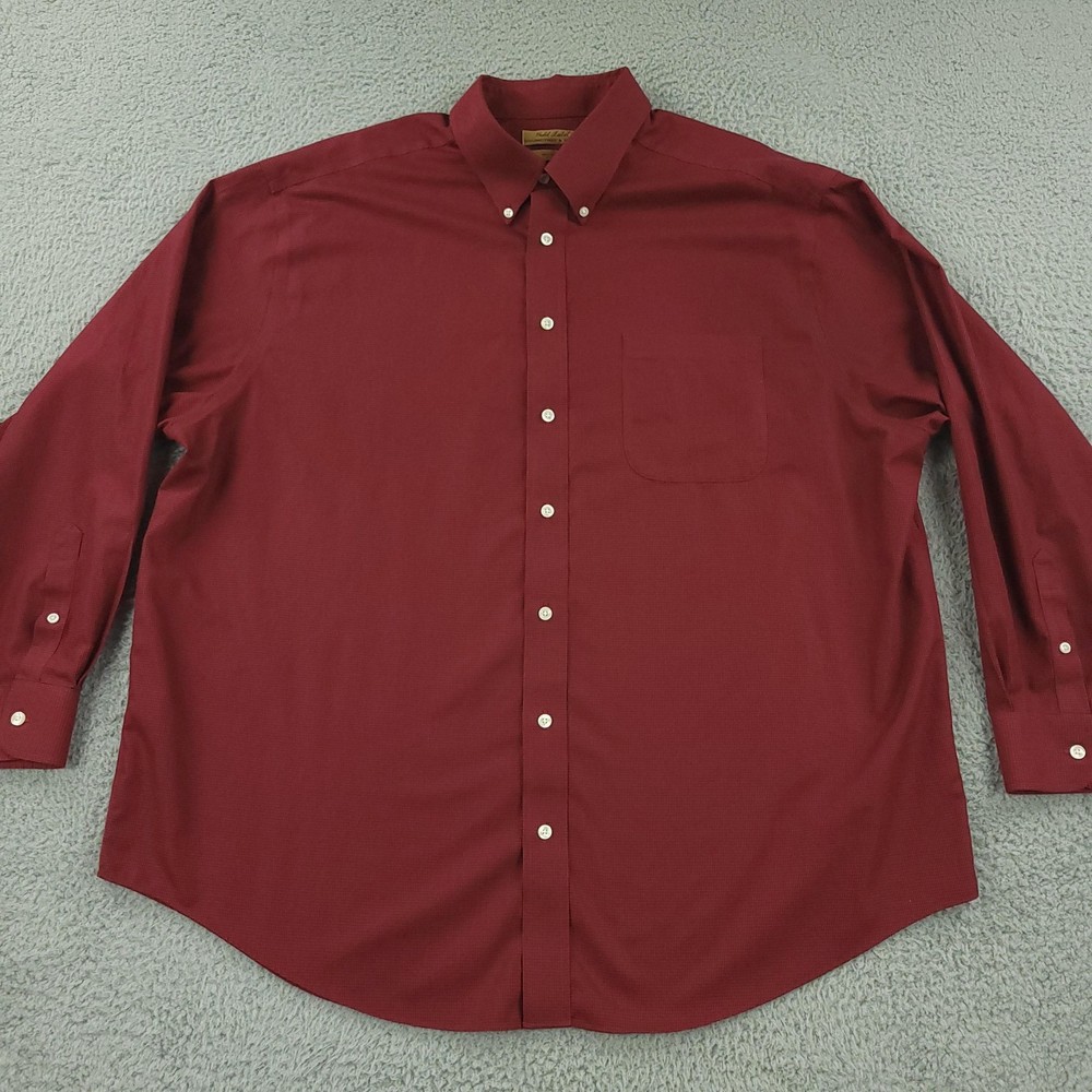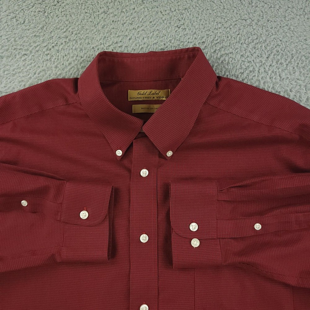 Brand: Roundtree & York Gold Label Style: Mens long sleeve button front shirt with button-down collar and left chest pocket. Color/Pattern: Deep red with subtle small check pattern. Material: 100% cotton (per tag). Features: Non-iron fabric, button cuffs, back yoke with center box pleat, curved shirttail hem. Size on tag: 2X. Made in Sri Lanka. Washed and dried with Fragrance Free Detergent & Dryer Sheets. Measurements are included in the photos, compare measurements with your item to ensure proper fit. (Measurements are done with the item lying flat). I ship next business day and all items include tracking. Items are added daily to my store Visit My Store Buy More & Save! Combined shipping for US customers - $1.99 for each additional item (Add items to shopping cart and discounts will automatically calculate during checkout)