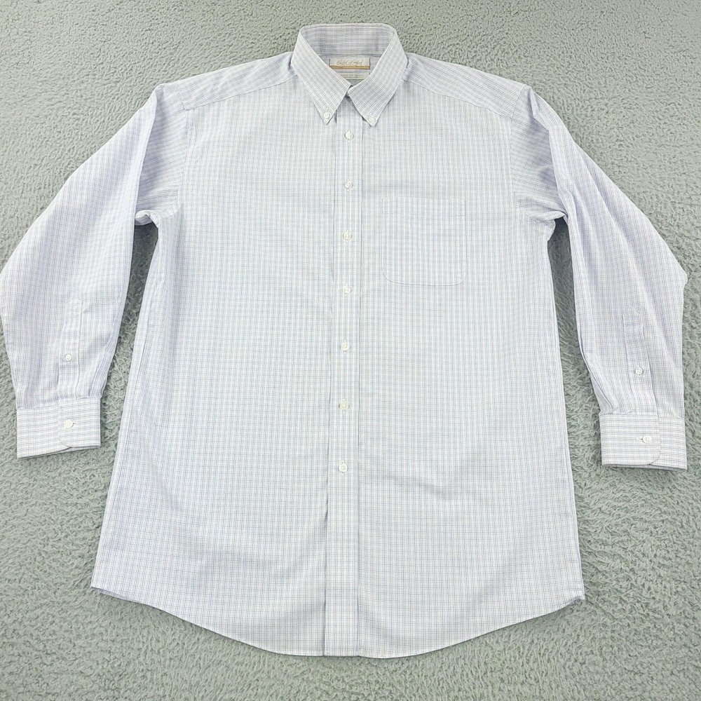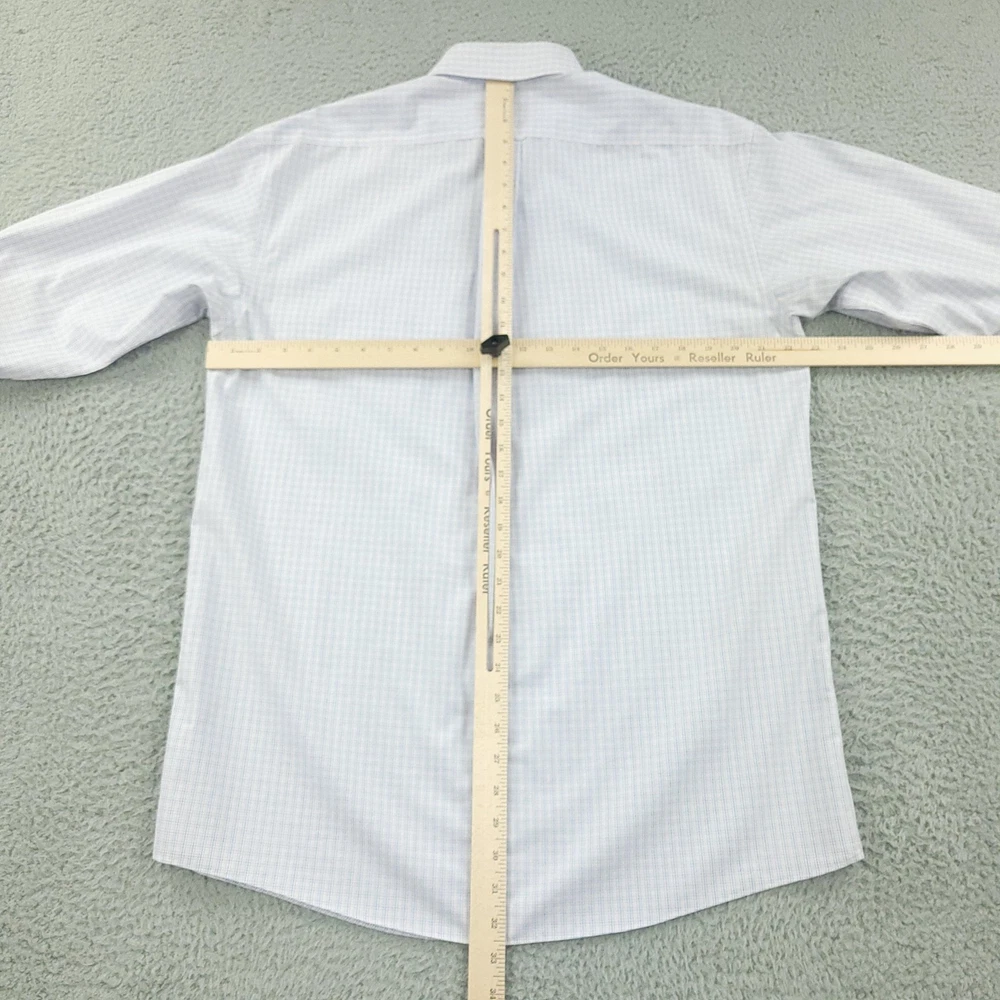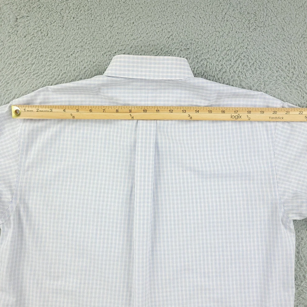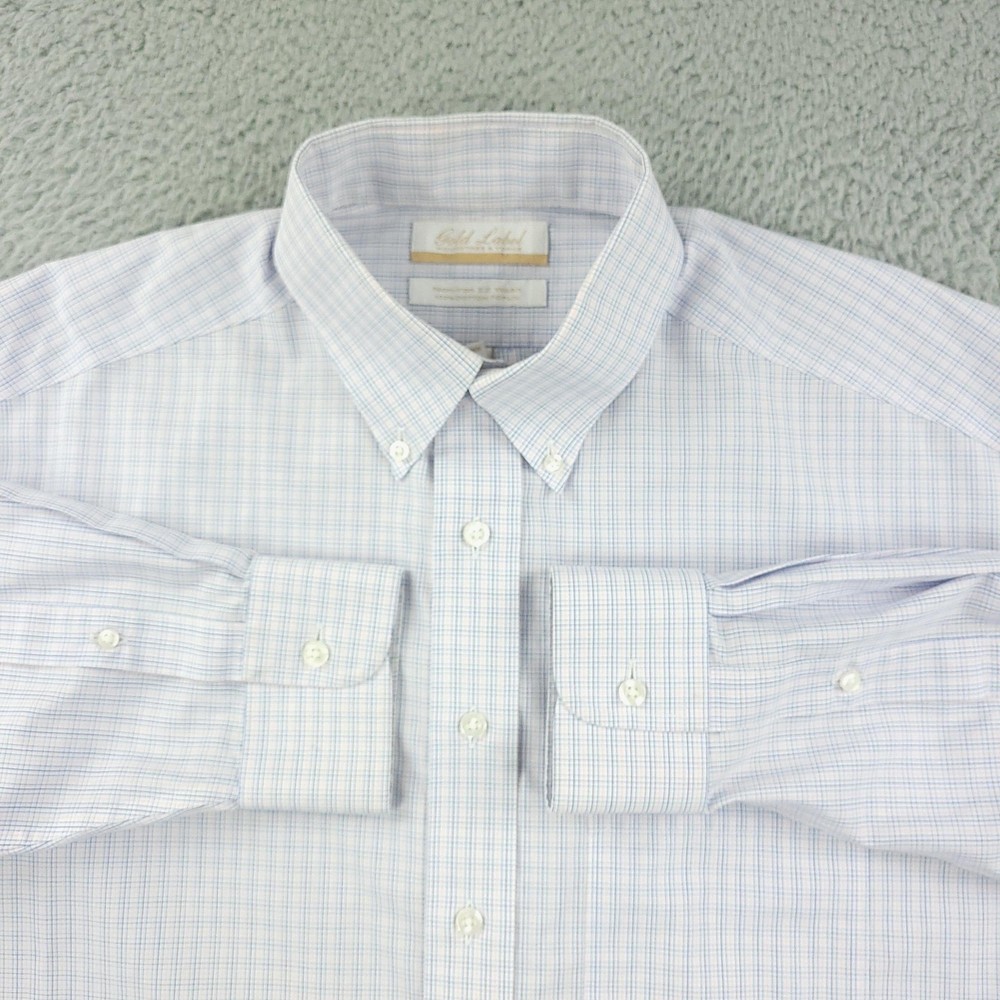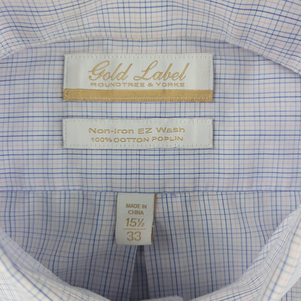 Roundtree & Yorke Gold Label Dress Shirt Mens 15.5 32/33 White Check Non Iron Brand: Roundtree & Yorke Gold Label Style: Mens long sleeve button-front dress shirt with button-down collar and single chest pocket. Color: White base with light blue grid check pattern. Tag size: 15.5 neck, 32/33 sleeve; classic fit. Material: 100% cotton poplin. Features: Non-iron EZ Wash easy-care fabric, barrel cuffs, back box pleat, curved shirttail hem; made in China. Measurements are included in the photos, compare measurements with your item to ensure proper fit. Items are added daily click here to Visit My Store Combined shipping for US customers is 1.99 for each additional item Items are cleaned per eBay standards & policies