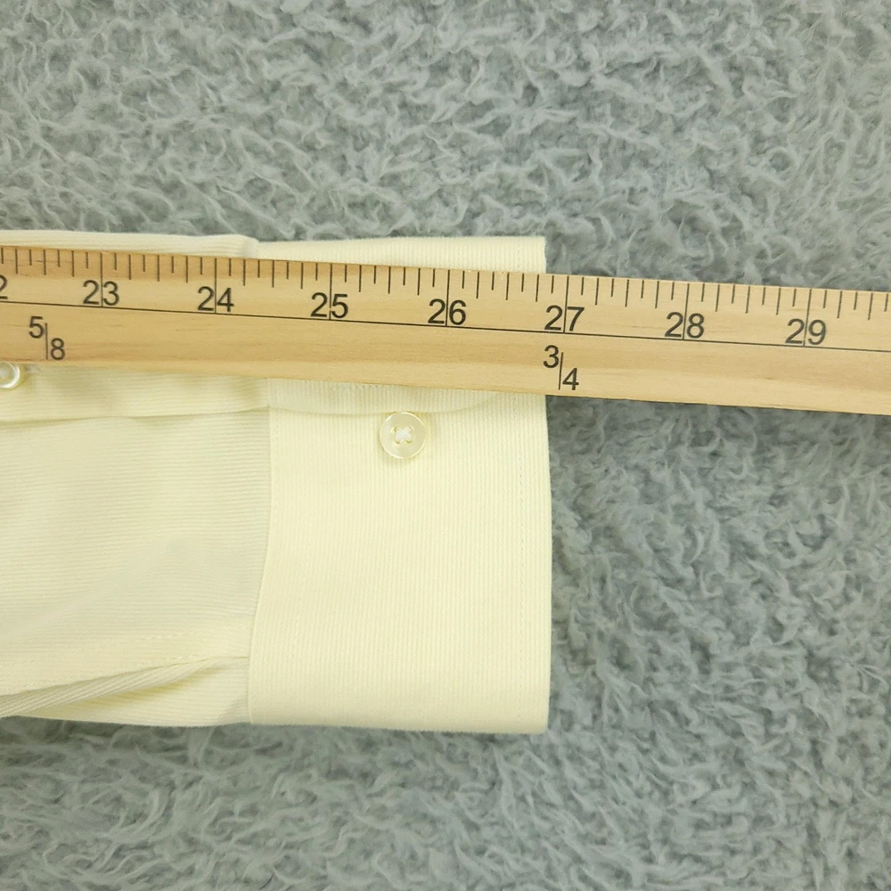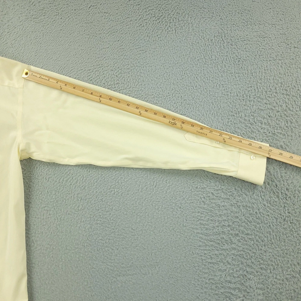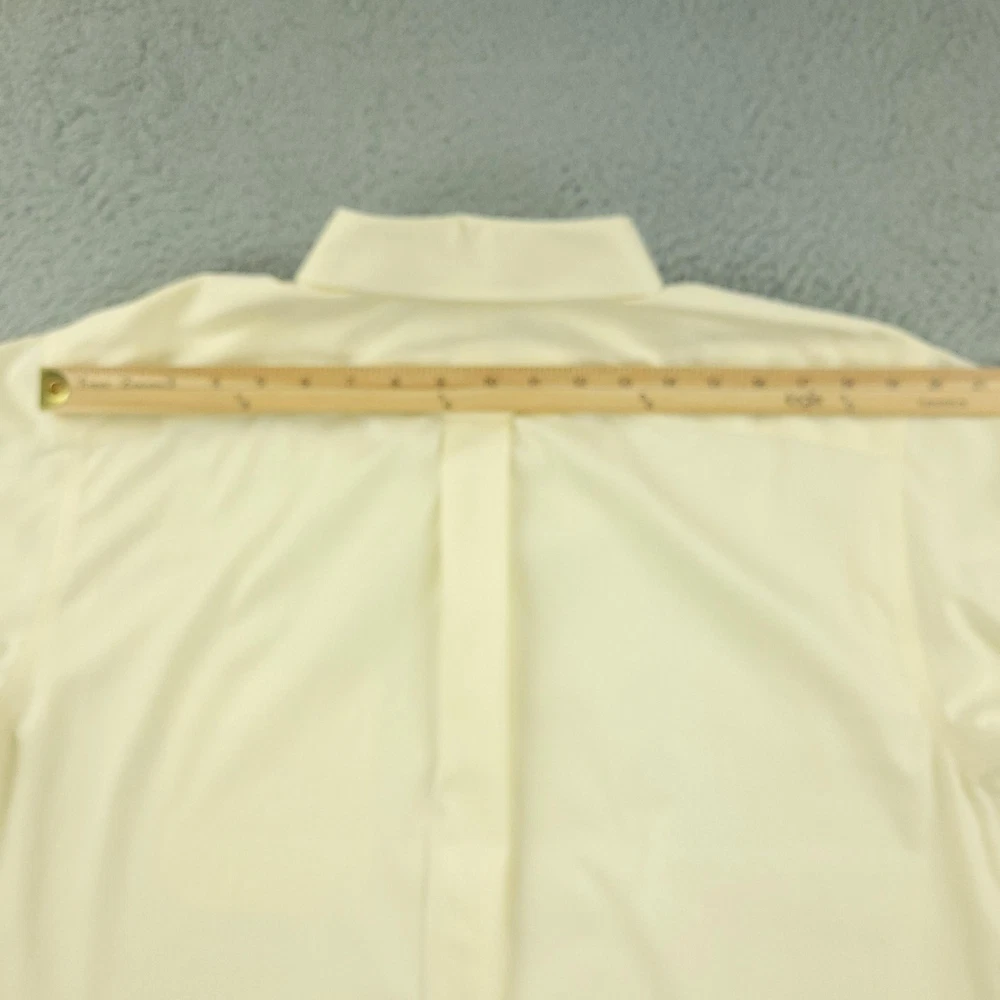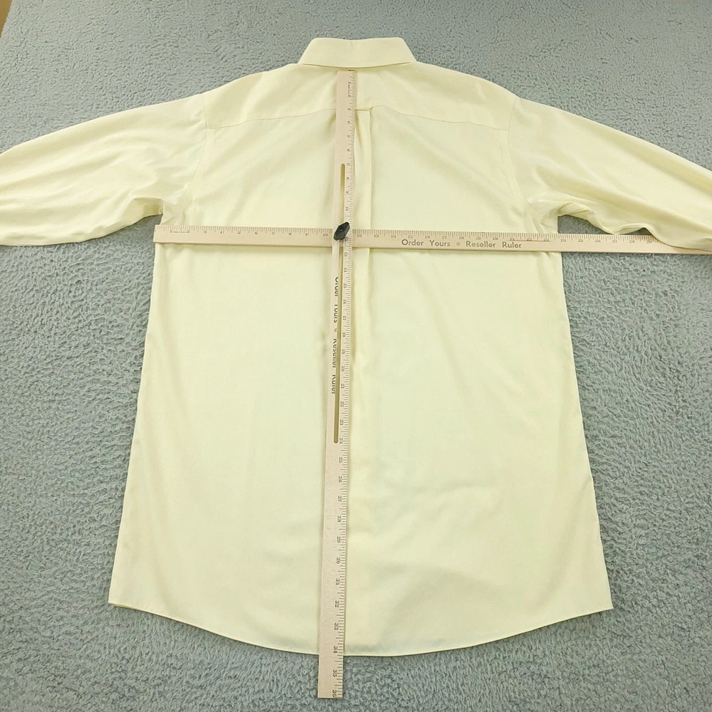 Roundtree & Yorke Gold Label Dress Shirt Mens 17 36/37 Yellow Tall Non Iron Brand: Roundtree & Yorke Gold Label. Style: Mens long sleeve non-iron dress shirt with subtle dobby texture and button-front closure. Color: Light yellow solid. Tag size: 17 neck / 36/37 sleeve, Tall (Big & Tall fit). Material: 100% cotton dobby, advanced generation non-iron fabric. Details: Button-down collar, single chest pocket, barrel button cuffs, back box pleat, curved shirttail hem. Additional info: Gold Label collection; made in Vietnam. Measurements are included in the photos, compare measurements with your item to ensure proper fit. Items are added daily click here to Visit My Store Combined shipping for US customers is 1.99 for each additional item Items are cleaned per eBay standards & policies