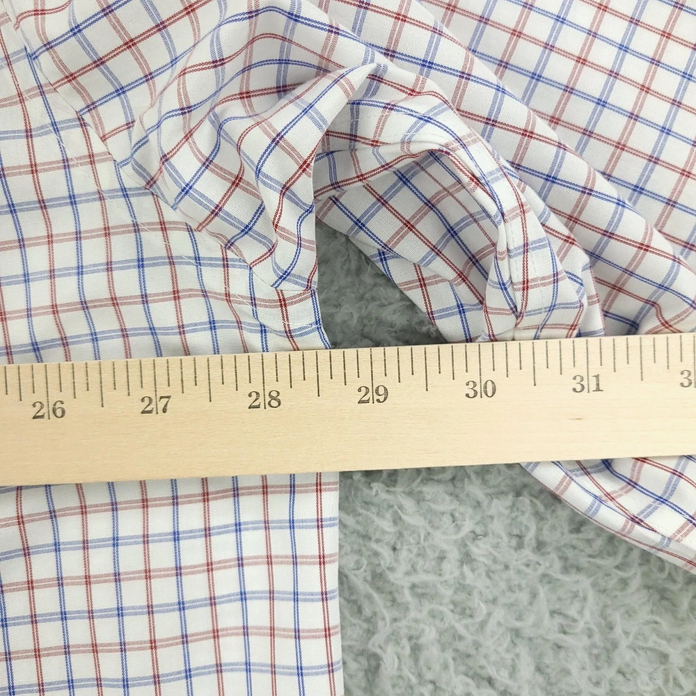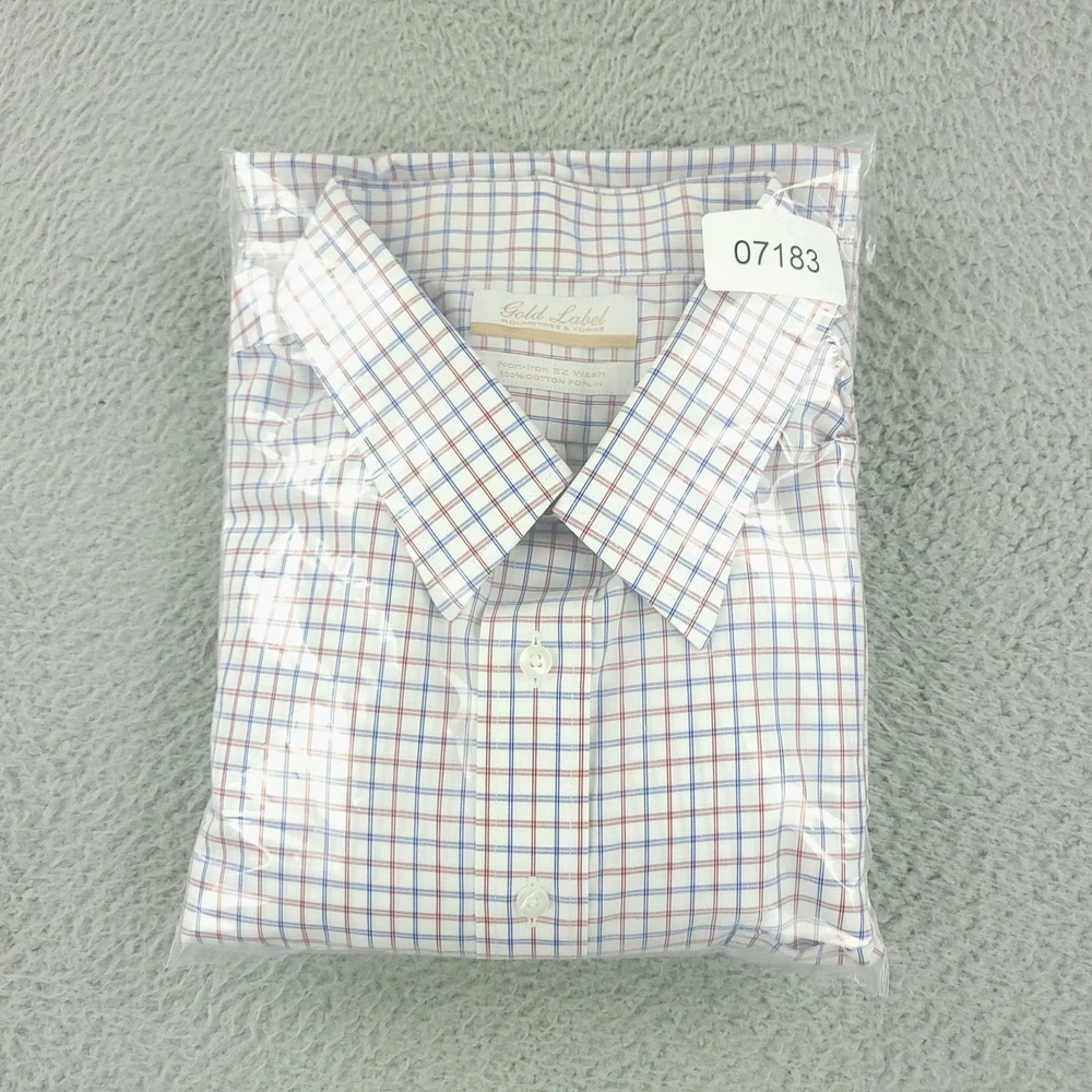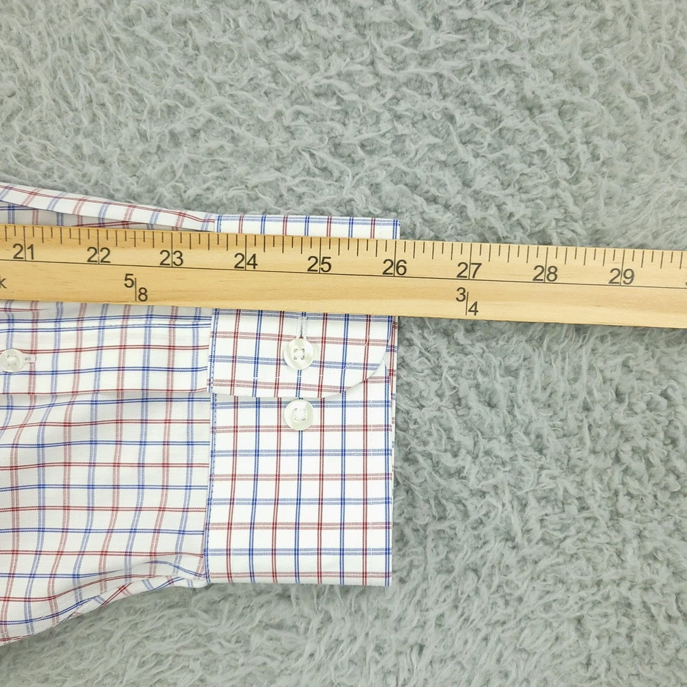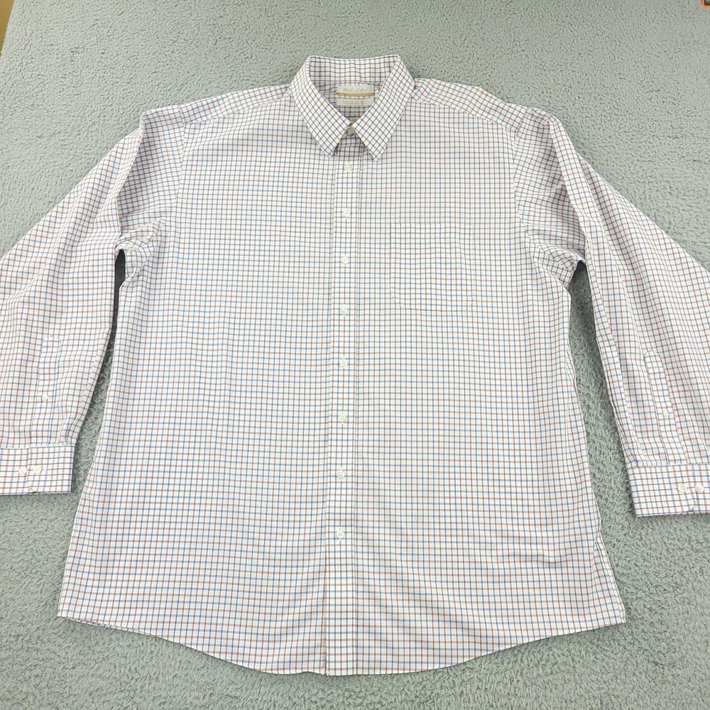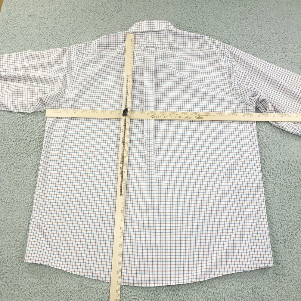 Roundtree & Yorke Gold Label Dress Shirt Mens 19 36/37 Tall White Check Non Iron Brand: Roundtree & Yorke Gold Label Style: Mens long sleeve button-front dress shirt with button-down collar and single chest pocket; tall Big & Tall fit. Color: White base with red and blue grid check pattern. Tag size: 19 inch neck, 36/37 sleeve, Tall (Big & Tall). Material: 100% cotton poplin. Features: Non-iron EZ Wash easy-care fabric, barrel cuffs with two buttons, back box pleat, curved shirttail hem, collared neckline; made in Vietnam. Labels: Gold Label Roundtree & Yorke; Non-iron EZ Wash 100% Cotton Poplin. Measurements are included in the photos, compare measurements with your item to ensure proper fit. Items are added daily click here to Visit My Store Combined shipping for US customers is 1.99 for each additional item Items are cleaned per eBay standards & policies