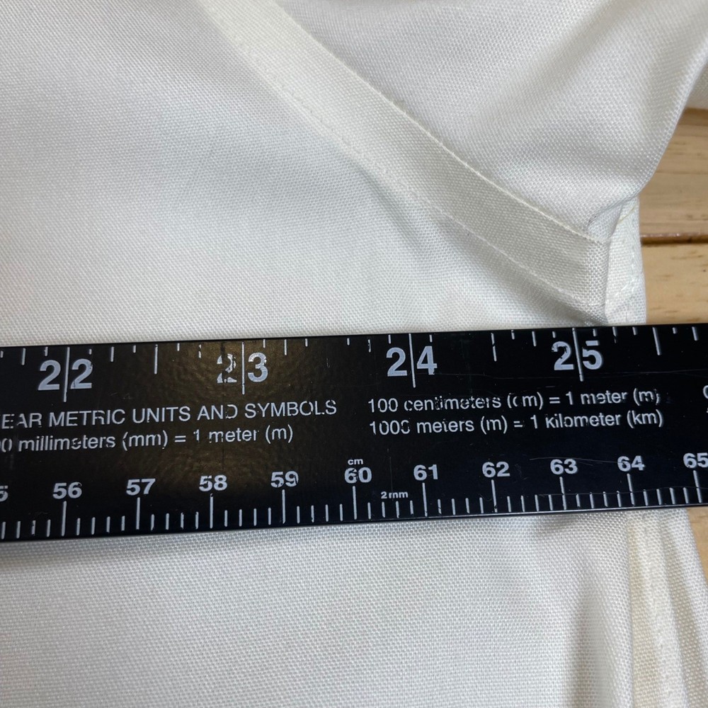 A classic short-sleeve button-down shirt, perfect for a variety of occasions. This shirt features a comfortable fit, a traditional button-down collar, and a clean front placket. The single chest pocket adds a touch of functionality without sacrificing style. Wrinkle-resistant properties make it easy to care for and keep looking sharp. This versatile shirt can be dressed up with slacks for a business casual look or paired with chinos for a more relaxed weekend style. Ideal for office wear, summer events, or casual outings. Measurements: • Pit to pit: 25 inches • Length: 32 inches Color: Ivory Department: Men Type: Dress Shirt Neck Size: 17.5 in Fit: Regular Sleeve Length: Short Sleeve Pattern: Solid Material: Cotton Blend, Pima Cotton, Polyester Blend, Polycotton, Cotton Collar Style: Button-Down Character: Classic, Preppy, Office, Business Casual Top Cuff Style: Barrel Cuff Keywords: Mens dress shirt, Short sleeve shirt, Button down shirt, Roundtree & Yorke, Ivory shirt, Cream shirt, 17 1/2, Wrinkle resistant, Office attire, Casual shirt, Pima cotton blend, Pinpoint, Dillards The Designer Clothing Exchange "Great Brands, Better Prices" - FAST SHIPPING DAILY - 5 STAR SELLER - NEW ITEMS DAILY