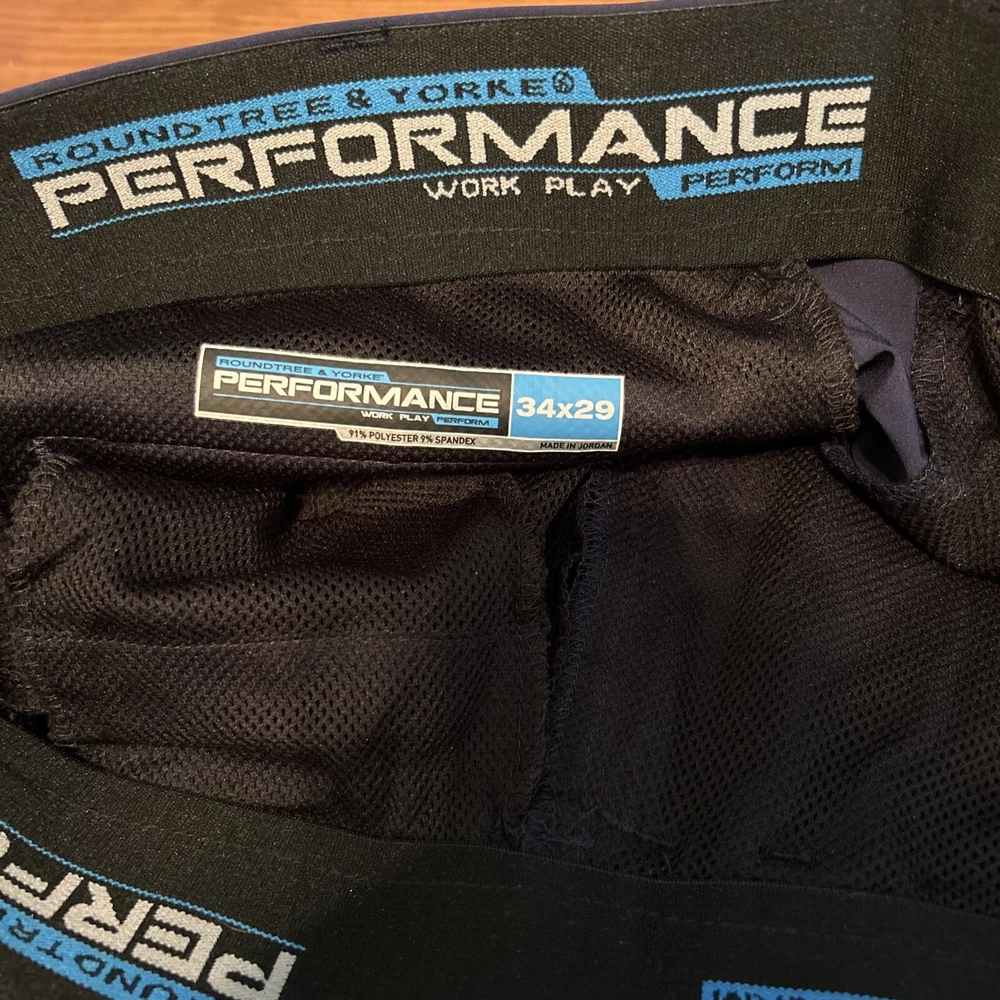 Roundtree & Yorke Men’s Performance Pants 34X29 Navy Blue Play Work Perform EUC