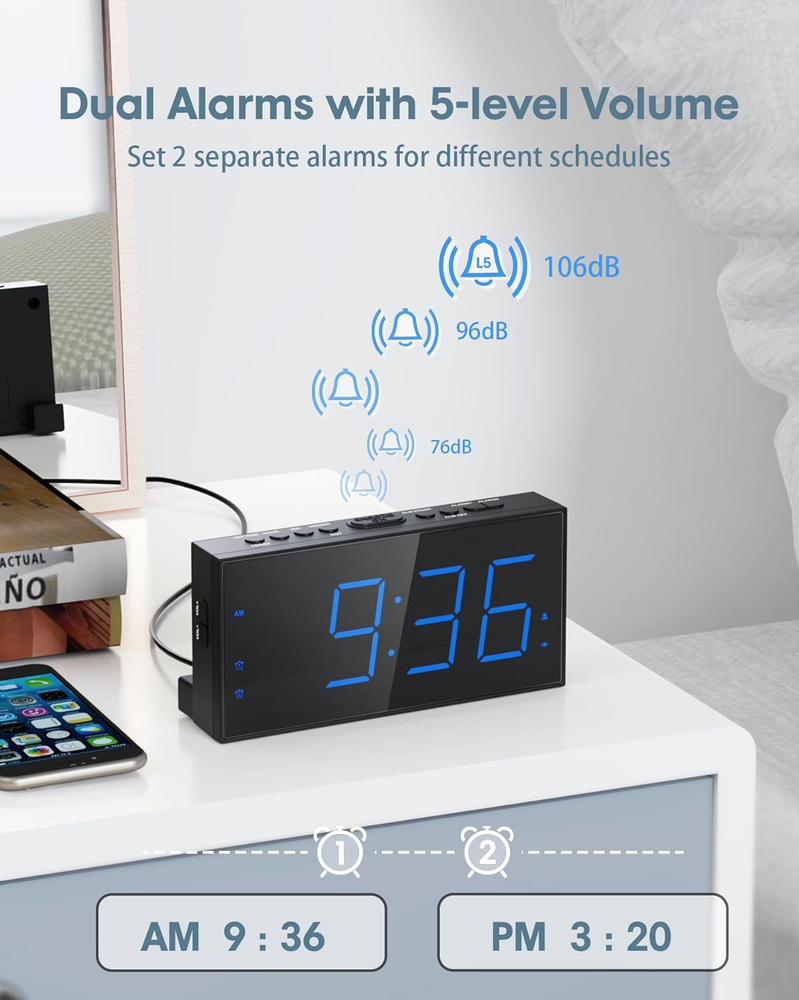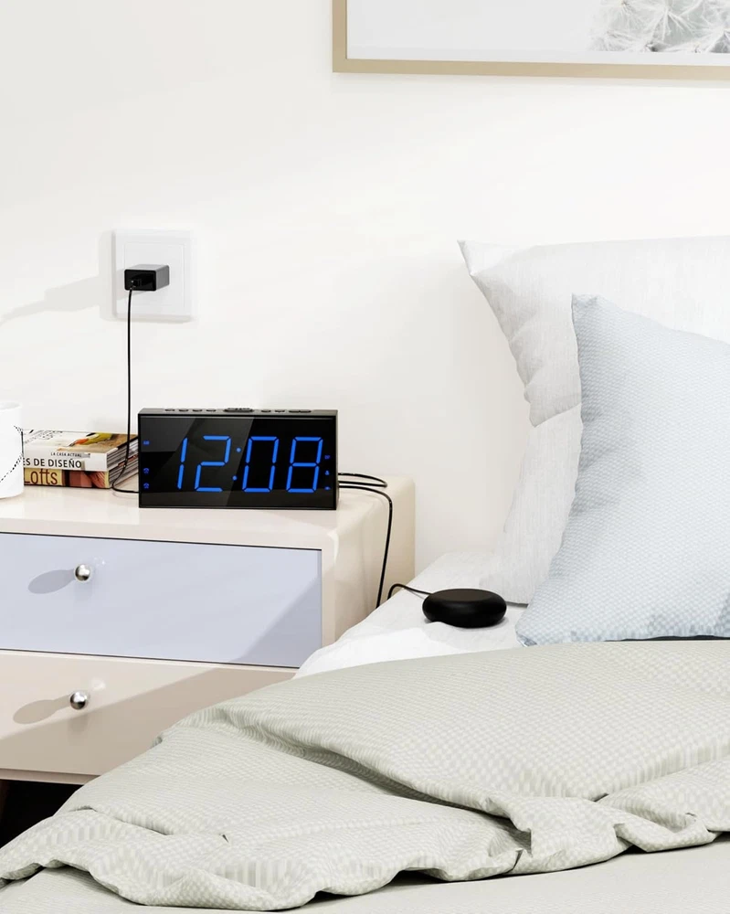 Store New Arrivals Add to Favorite View Feedback Contact Roxicosly Loud Alarm Clock with Bed Shaker, Vibrating Alarm Clock for Heavy Sleepers/Hard of Hearing/Deaf,Dual Alarms, 7.5’’ Large LED Display, Dimmer, USB Charging Port, Plug-In with Memory Function Description Item model number CR1001EM Style Modern Number of Items 1 Power Source Battery Powered Dial Color Blue Warranty Type Manufacturer's warranty Theme Loud Are Batteries Included No Room Type Bedroom, Living Room, Dining Room, Kitchen, Kids, Nursery, Bathroom, Home Office Product Dimensions 6.82"W x 3.39"H Material Plastic Operation Mode Electrical Frame Material Acrylonitrile Butadiene Styrene Alarm Clock Yes Number of Batteries 2 AAA batteries required. Manufacturer Wuhan Wismco E-commerce Co., Ltd. Indoor/Outdoor Usage Indoor Item Weight 7 ounces Connectivity Technology USB Special Feature function(f) {var _np=(window.P._namespace("DetailPageProductOverviewTemplatesJava"));if(_np.guardFatal){_np.guardFatal(f)(_np);}else{f(_np);}}(function(P) { P.when('A').execute(function(A){ A.on('a:truncate:po-attribute-truncate-4:updated', function(data) { var isTruncated = !data.truncateInstance.getIfTextFits(); var seeMoreElement = document.getElementById('po-attribute-see-more-id-4'); if(seeMoreElement) { seeMoreElement.style.display = isTruncated ? '' : 'none'; } }) }); })); Adjustable Sound & Bed Shaker, Dual alarm clock with Big Snooze Button, Large Display and 5-level Brightness Dimmer, Outlet Powered Clock with Momery Function, USB Charging Port, 12/24H Format, DST See more Display Type Digital Mounting Type Tabletop Clock Form Multi Display Color Blue Digits, Thin Font Shape Rectangular Batteries 2 AAA batteries required. Brand Roxicosly Size with Bed Shaker & Thin Font 【𝗪𝗮𝗸𝗲 𝗨𝗽 𝘄𝗶𝘁𝗵 𝗔𝗱𝗷𝘂𝘀𝘁𝗮𝗯𝗹𝗲 𝗦𝗼𝘂𝗻𝗱 & 𝗕𝗲𝗱 𝗦𝗵𝗮𝗸𝗲𝗿】-Different from regular sound-only alarm clocks, this alarm clock offers 𝘁𝗵𝗿𝗲𝗲 𝘄𝗮𝗸𝗲-𝘂𝗽 𝗼𝗽𝘁𝗶𝗼𝗻𝘀: sound only, bed shaker only, or sound + shaker, allowing users to choose what works best for them.The buzzer volume is adjustable, and the bed shaker provides additional vibration support to help wake heavy sleepers. Wake-up effectiveness may vary depending on individual sensitivity, mattress type, and setup. ⚠️ 𝗣𝗹𝗲𝗮𝘀𝗲 𝗻𝗼𝘁𝗲: This alarm is designed for heavy sleepers or hard of hearing users who prefer vibration-assisted alarms. Sound loudness is adjustable but may not feel loud enough for users expecting a screaming alarm. 【𝗗𝘂𝗮𝗹 𝗔𝗹𝗮𝗿𝗺𝘀 𝘄𝗶𝘁𝗵 𝗖𝗹𝗲𝗮𝗿 𝗦𝗻𝗼𝗼𝘇𝗲 & 𝗔𝗹𝗮𝗿𝗺 𝗖𝗼𝗻𝘁𝗿𝗼𝗹𝘀】-Set 𝘁𝘄𝗼 𝗶𝗻𝗱𝗲𝗽𝗲𝗻𝗱𝗲𝗻𝘁 𝗮𝗹𝗮𝗿𝗺𝘀 for different schedules. The large snooze button 𝘁𝗲𝗺𝗽𝗼𝗿𝗮𝗿𝗶𝗹𝘆 𝗽𝗮𝘂𝘀𝗲𝘀 𝘁𝗵𝗲 𝗮𝗹𝗮𝗿𝗺 𝗳𝗼𝗿 𝟵 𝗺𝗶𝗻𝘂𝘁𝗲𝘀, after which it will ring again. Use “𝗔𝗟𝗔𝗥𝗠 𝗢𝗙𝗙” to stop the alarm completely, or “𝗔𝗟𝗔𝗥𝗠 𝗣𝗔𝗨𝗦𝗘”to silence alarms for the next 24 hours only. ⚠️ Alarm Pause does not cancel saved alarm settings. 【𝗟𝗮𝗿𝗴𝗲 𝗗𝗶𝘀𝗽𝗹𝗮𝘆 𝘄𝗶𝘁𝗵 𝟱-𝗟𝗲𝘃𝗲𝗹 𝗔𝗱𝗷𝘂𝘀𝘁𝗮𝗯𝗹𝗲 𝗕𝗿𝗶𝗴𝗵𝘁𝗻𝗲𝘀𝘀】-Features a 𝟳.𝟱-𝗶𝗻𝗰𝗵 𝗟𝗘𝗗 𝗱𝗶𝘀𝗽𝗹𝗮𝘆 with large numbers for easy viewing at typical bedroom distances. Screen brightness is adjustable across 𝟱 𝗹𝗲𝘃𝗲𝗹𝘀 to reduce brightness at night or increase visibility during the day. Brightness perception may vary depending on room lighting, viewing distance, and eyesight sensitivity. ⚠️ The LED display remains visible when powered on and does not fully turn off. 【𝗣𝗹𝘂𝗴-𝗜𝗻 𝗔𝗹𝗮𝗿𝗺 𝗖𝗹𝗼𝗰𝗸 𝘄𝗶𝘁𝗵 𝗠𝗲𝗺𝗼𝗿𝘆 𝗕𝗮𝘁𝘁𝗲𝗿𝘆 𝗕𝗮𝗰𝗸𝘂𝗽】-Operates with 𝗔𝗖 𝗽𝗼𝘄𝗲𝗿 𝗼𝗻𝗹𝘆 (𝟭𝟬𝟬–𝟮𝟰𝟬𝗩) for full functionality. Two AAA batteries (not included) are used for 𝗺𝗲𝗺𝗼𝗿𝘆 𝗯𝗮𝗰𝗸𝘂𝗽 𝗼𝗻𝗹𝘆, preserving time and alarm settings during power outages. During battery backup, the screen will turn off to conserve power, while the alarm will still trigger at the set time. ⚠️ 𝗕𝗮𝗰𝗸𝘂𝗽 𝗯𝗮𝘁𝘁𝗲𝗿𝗶𝗲𝘀 𝗱𝗼 𝗻𝗼𝘁 𝗽𝗼𝘄𝗲𝗿 𝘁𝗵𝗲 𝗱𝗶𝘀𝗽𝗹𝗮𝘆 𝗼𝗿 𝗻𝗼𝗿𝗺𝗮𝗹 𝗼𝗽𝗲𝗿𝗮𝘁𝗶𝗼𝗻. 【𝗨𝗦𝗕 𝗖𝗵𝗮𝗿𝗴𝗶𝗻𝗴 𝗣𝗼𝗿𝘁, 𝟭𝟮/𝟮𝟰 𝗛&𝗗𝗦𝗧】-Includes a 5V/1A 𝗨𝗦𝗕 𝗰𝗵𝗮𝗿𝗴𝗶𝗻𝗴 𝗽𝗼𝗿𝘁 for convenient overnight charging of phones or small electronic devices. Supports 𝟭𝟮-𝗵𝗼𝘂𝗿 / 𝟮𝟰-𝗵𝗼𝘂𝗿 𝘁𝗶𝗺𝗲 𝗳𝗼𝗿𝗺𝗮𝘁𝘀 and Daylight Saving Time (𝗗𝗦𝗧), which can be adjusted using the dedicated buttons. Clearly labeled buttons support daily alarm and time settings; due to multiple functions, some users may need a short learning period during initial setup. Best suited for adults, college students, and heavy sleepers who prefer vibration-assisted alarms. 𝗜𝗳 𝘆𝗼𝘂 𝗵𝗮𝘃𝗲 𝗮𝗻𝘆 𝗶𝘀𝘀𝘂𝗲 𝘄𝗶𝘁𝗵 𝘀𝗲𝘁𝘂𝗽 𝗼𝗿 𝘃𝗶𝗯𝗿𝗮𝘁𝗶𝗼𝗻, 𝗽𝗹𝗲𝗮𝘀𝗲 𝗰𝗼𝗻𝘁𝗮𝗰𝘁 𝘂𝘀 𝗳𝗶𝗿𝘀𝘁. Product description Bed Shaker Alarm Clock with Large Display for Heavy Sleepers, Hard of Hearing A vibration-assisted alarm clock designed for bedside use, offering flexible features for everyday routines. Excellent Features- 3 wake-up modes opt