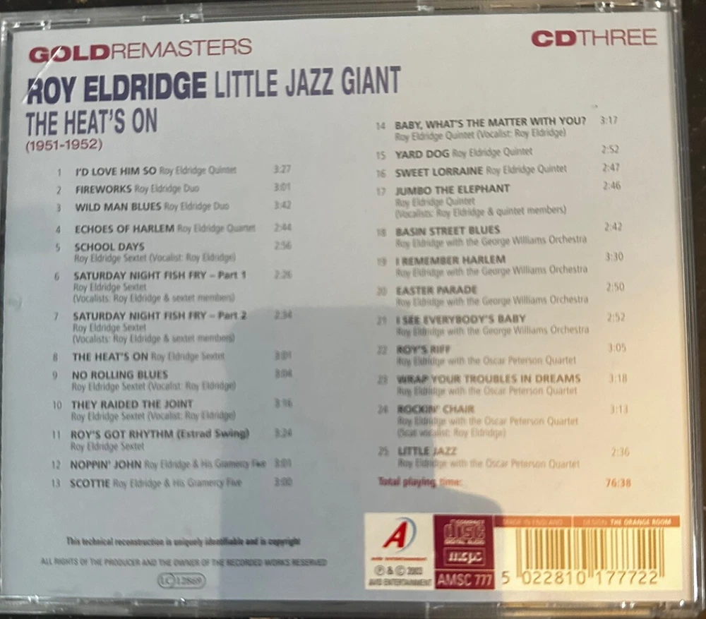 Roy Eldridge Little Jazz Giant 3CD Box Set Excellent Condition