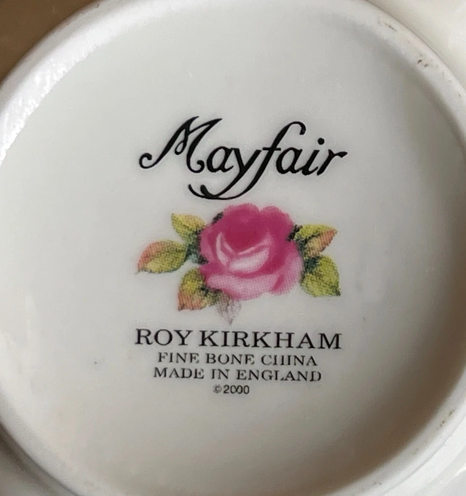 Add a touch of elegance to your morning routine with this set of Teacup & Saucer. Made of fine bone china and designed by Roy Kirkham, this cup features a beautiful floral pattern from "Mayfair" collection. The cup is suitable for both hot and cold beverages. This original cup was manufactured in the United Kingdom in 2000 and is perfect for collectors or for daily use. Each cup has a unique multicolor design and is made of high-quality materials. Start your day off right with this beautiful cup that is sure to impress. This cup is part of a huge collection of Roy Kirkham fine bone china items including mugs, jumbo breakfast cups with saucers, footed cups with saucers, salad plates and more. _______________________________________________ Price of the item does not include shipping fees. Buyer is responsible for all shipping costs. Please review the listing photos and description carefully. Due to lighting, actual colors may vary slightly from pictures. Items are always carefully and securely packed in a box. The description of items is as accurate as possible. However, if there is a problem with the item you receive, please contact me prior to leaving your feedback and I will be happy to resolve the issue to our mutual satisfaction.