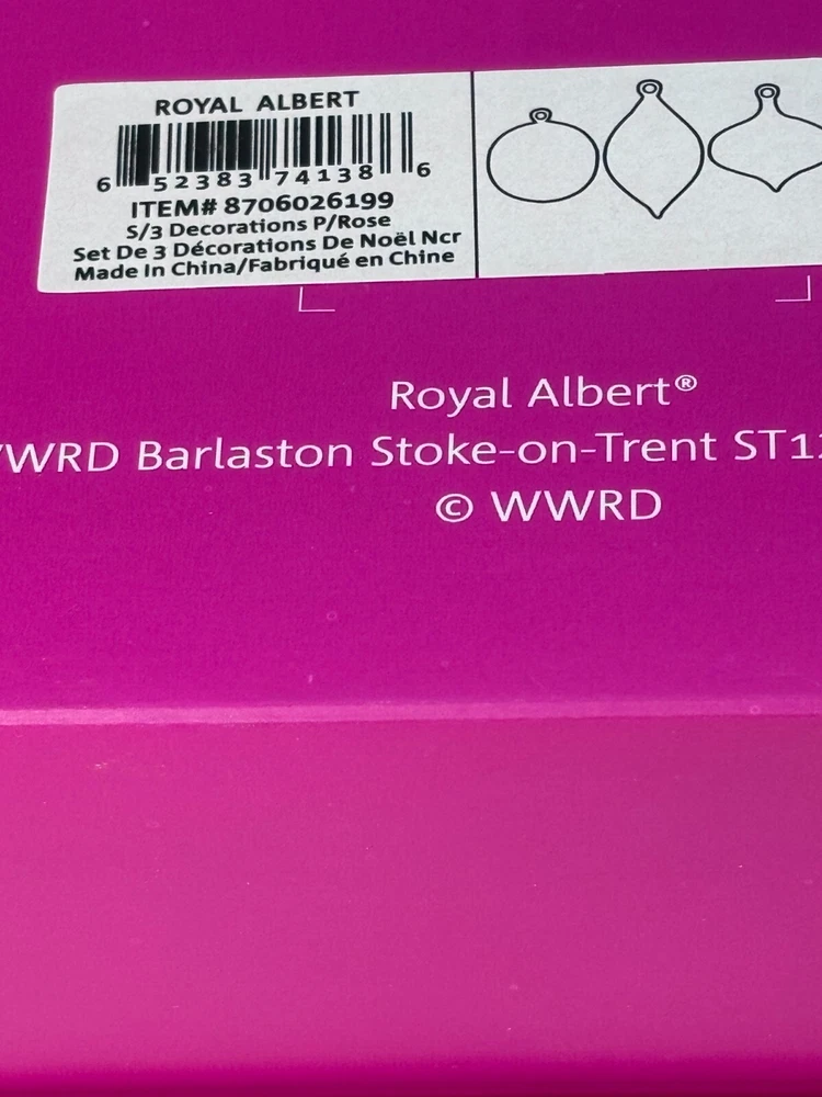 Brand: Royal Albert Theme: England Material: Bone China Number of Items: 3 Seller Notes: “extremely good preowned condition. In original box.” UPC: 652383741386 Features: Hanging gtin13: 652383741386 Shape: 3 shapes Item Length: 3 in Country/Region of Manufacture: China Occasion: Christmas Pattern: Painted Size: Medium Department: Adults MPN: 8706026199 Color: White Type: bone china ornament
