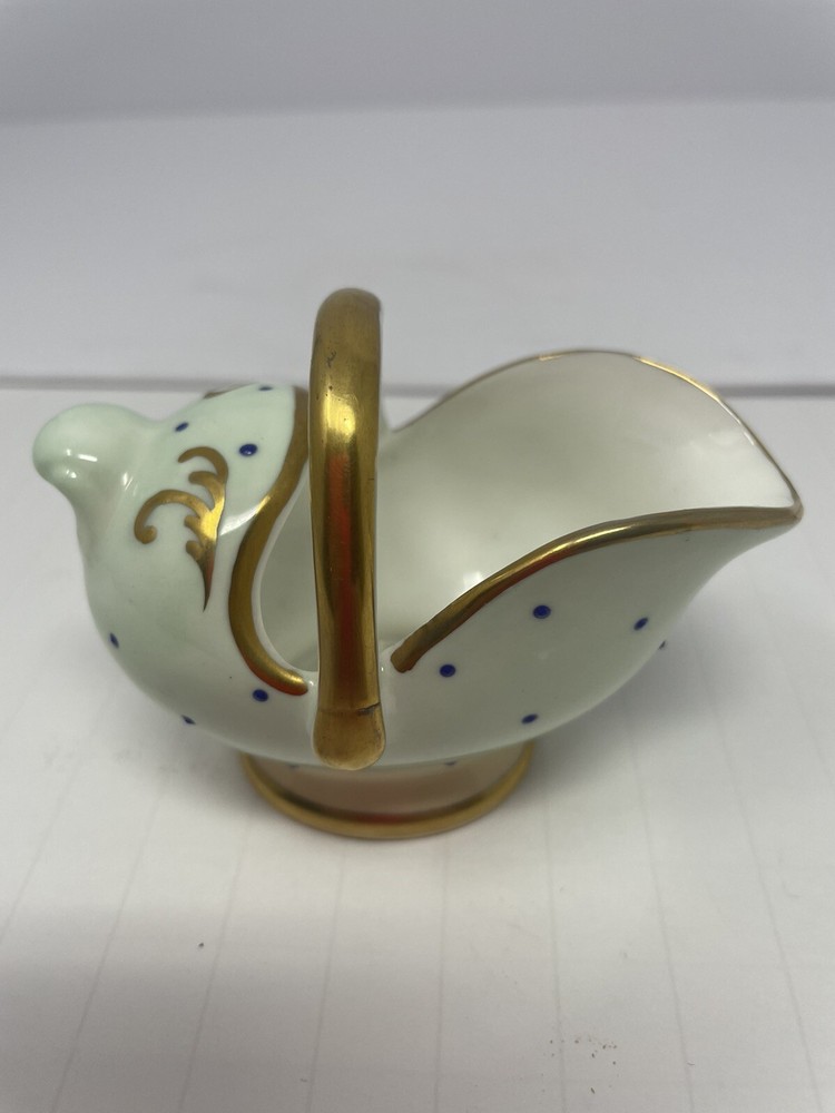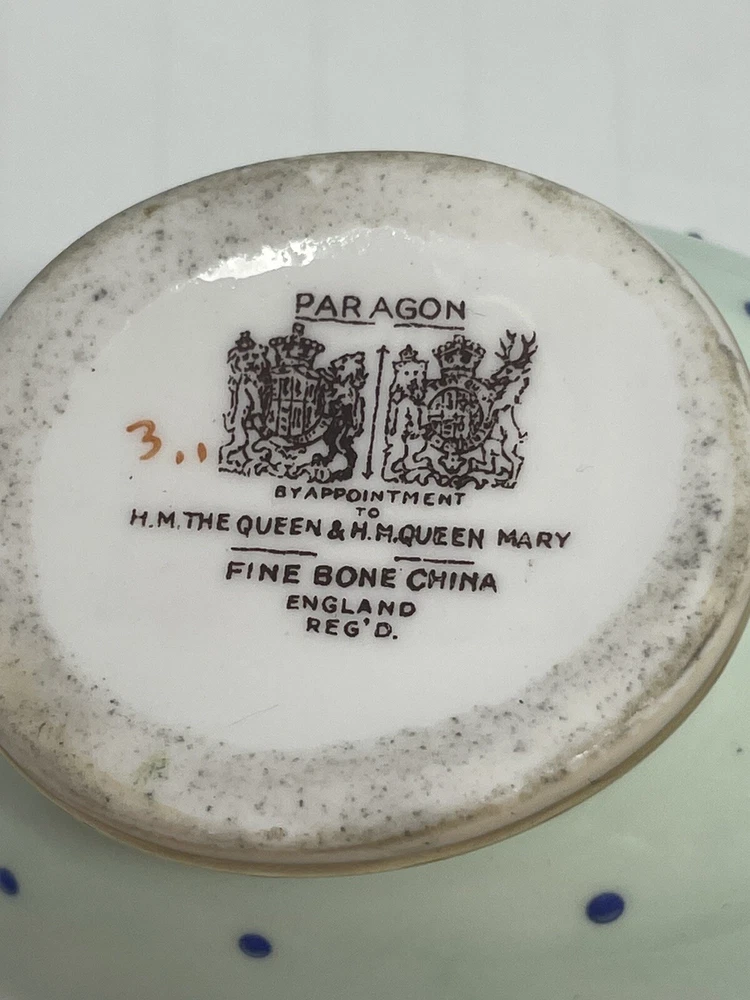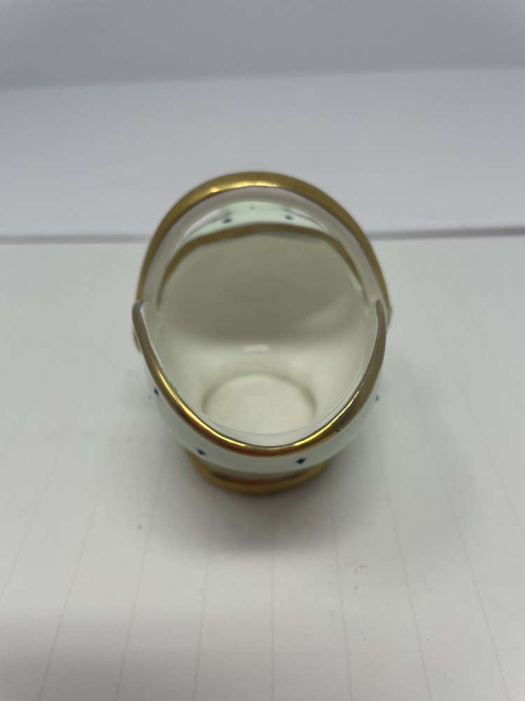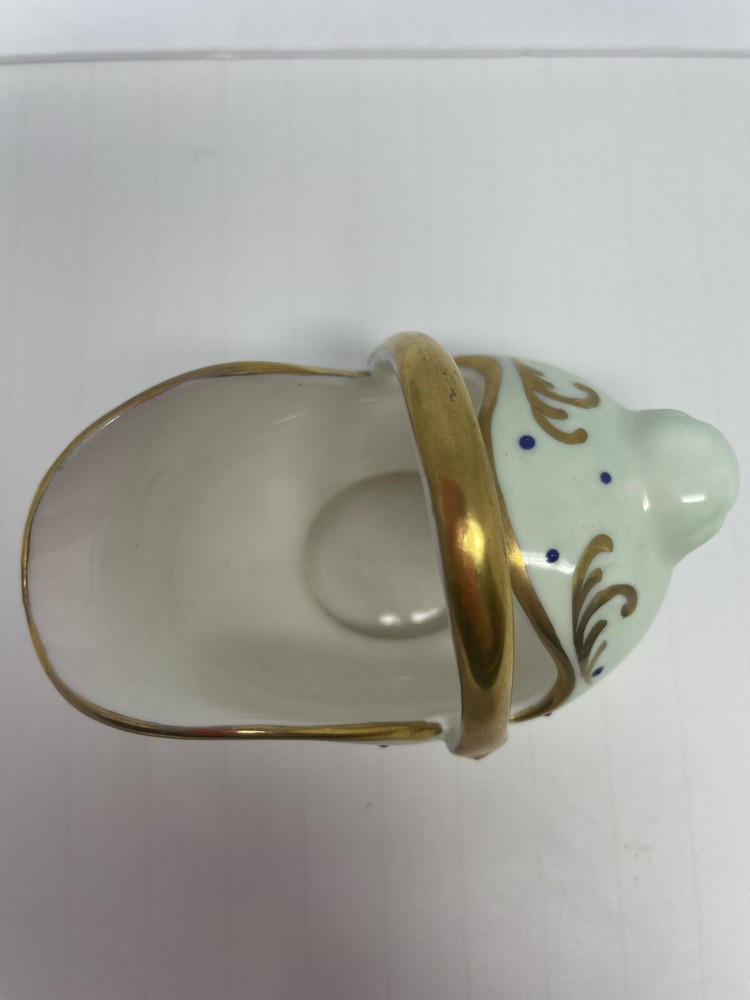 Paragon fine bone china HM The Queen & HM Queen Mary miniature coal scuttle. Pale green and gold. 3in. X 3.5 in. Excellent condition. **Please See Photos**