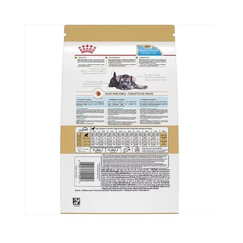 Designed to meet the nutritional needs of purebred Miniature Schnauzers 8 weeks to 10 months old. Specialized kibble helps small dogs pick up and chew their food. Helps support puppy development of their immune system and natural defenses with an exclusive complex of antioxidants including vitamin E. Promotes healthy weight management during puppy’s growth with precise nutrients, moderate fat levels, and added L-carnitine for weight control. Supports digestion and promotes optimal stool quality with high-quality proteins and prebiotics..