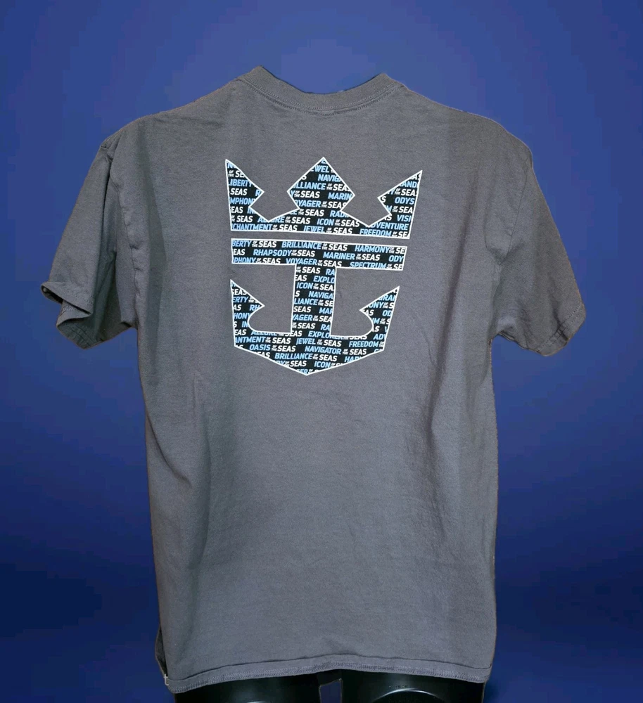 Royal Caribbean International Anchor Gray Mens Large Tshirt Ships Names Chest-20.25" across pit to pit Length-27.5"