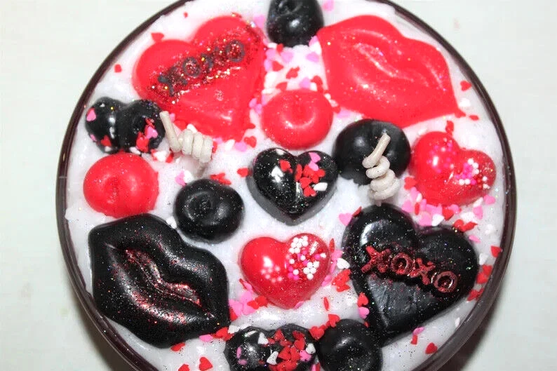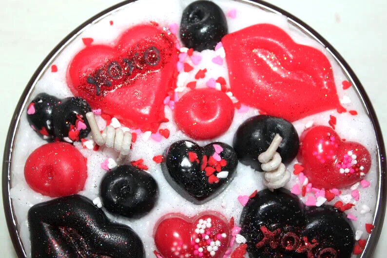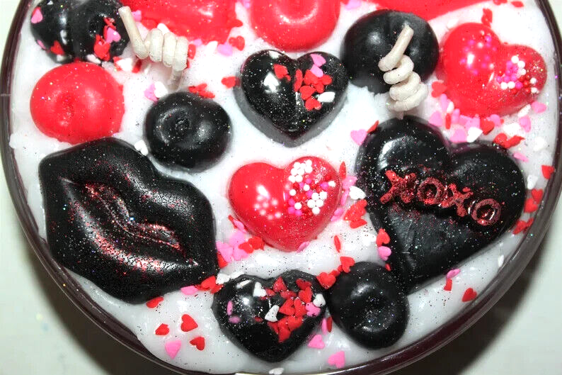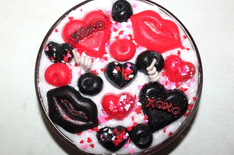 **** SHIPPING IS OFTEN CALCULATED HIGH WHEN PURCHASING MORE THAN 1 ITEM SO FEEL FREE TO MESSAGE ME FOR A SHIPPING QUOTE **** When combining purchases please click on "request total from seller" at checkout and wait for me to send you a invoice with combined shipping. If you are using your phone this option may not be available and if so just message me and I can make you a listing with everything combined and the correct amount on shipping. Thank You ;) This is my handmade highly scented Valentine's bowl candle. The bowl is 6" x 3". On top of the candle I put pieces of very real looking wax candy chocolates, lips, hearts, cherries, sprinkles and glitter. It is highly scented in ROYAL CHERRIES JUBILEE. This exquisite cherry aroma begins with top notes of wild cherries, fresh berries, and sweet peaches. Next, you will find notes of spicy cinnamon, clove, and orange zest! Finally, notes of geranium, violet, and vanilla anchor this festive fragrance. International Buyers : Please contact me for shipping quote. Caution: Failure to follow instructions could result in fire hazard injury, or smoke damage. Keep wax free of matches, wick trimmings, or other flammable materials. Keep wick centered & trimmed to 1/4" to prevent smoking & soot build up on container or other items. Burn only on stable heat resistant surface for not more than 4 hours at a time. Keep out of drafts. Discontinue use when only 1/2" wax remains on bottom. Do not move candle while burning or if wax is hot. Keep out of reach of children & pets. Never leave a burning candle unattended. Shipping I strive to ship within 48 hours of payment received not including weekends and holidays. I ship USPS Priority or Parcel Post and for the heavier orders I can ship Fed-Ex. I do offer USPS Flat Rate shipping as well. Insurance is the buyers responsibility. I am always happy to combine auctions to save you money on shipping fees. Please email with any shipping questions or quotes if needed. Thanks for stopping by! Please do come back again soon~ *** Please note I do not accept returns for used merchandise. Must be returned in same condition as received. *** RETURNS ARE ONLY ACCEPTED IF ITEM HAS BEEN MISREPRESENTED