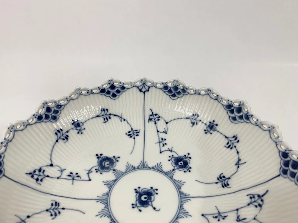 Royal Copenhagen Blue Fluted Full Lace 1022 Cake Stand Bowl Condition: Small stain to the side of the bowl Bowl Height: 17,5 cm Diameter: 28 cm The pictures taken is the same one that you will receive. Shipping! I also combine shipping. Please contact me if you have any other questions.