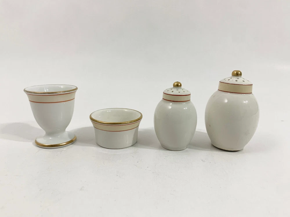 6x Royal Copenhagen The Spanish Pattern 469 Candle Holders , 215 Salt and 264 Pepper Shakers 2438 Egg Cup and 374 Small Bowl Lot Condition: Item show different signs of ware. 1279 Egg cup, Produced 1923 469 Candle Holders Height: 5,5,5 Diameter: 11,5 cm 264 Pepper Shaker Height: 8 cm Diameter: 5,5 cm 215 Salt Shaker Height: 7 cm Diameter: 4,5 cm 1279 Egg cup, Produced 1923 Height: 6 cm Diameter: 5 cm 345, Small bowl Height: 3 cm Diameter: 5,5 cm The pictures taken is the same one that you will receive. Shipping! I also combine shipping. Please contact me if you have any other questions.