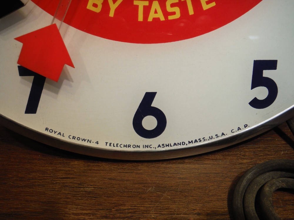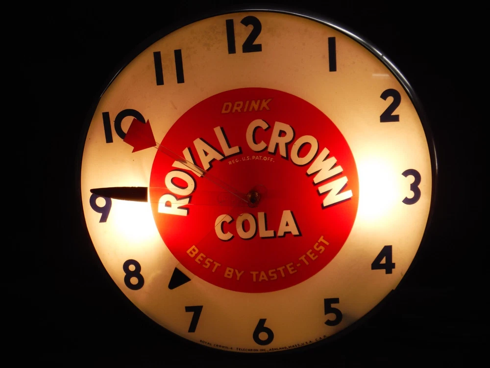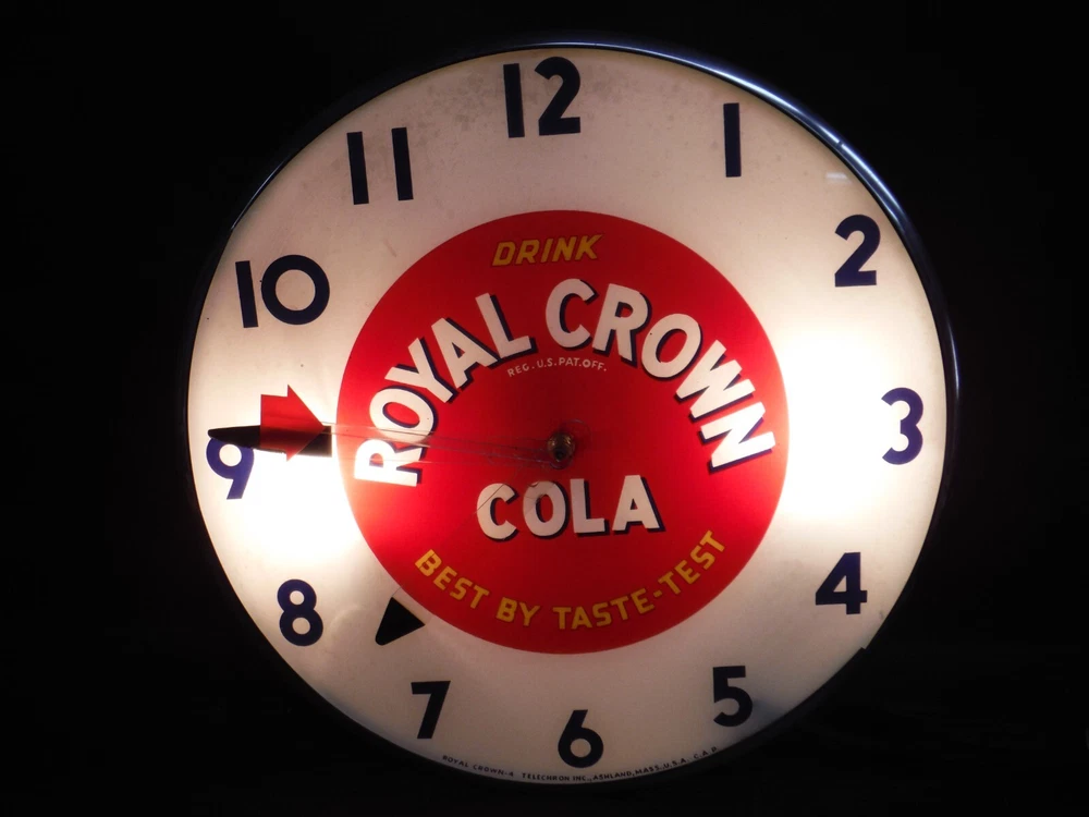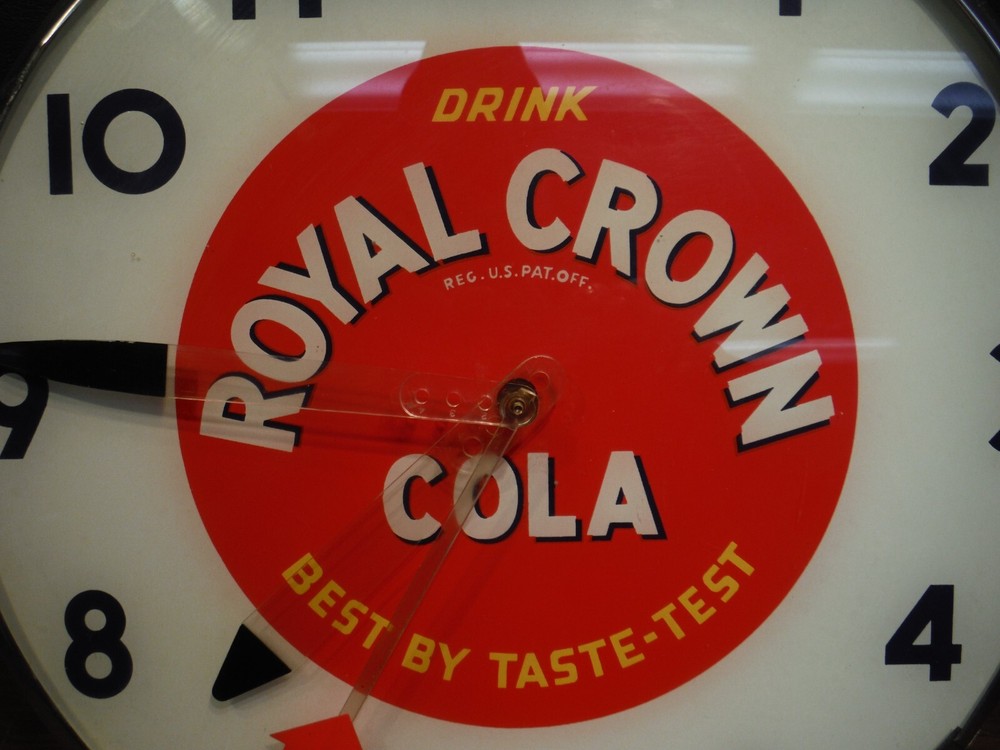 Royal Crown RC Cola Lighted Pam Clock Soda Advertising - Clean Original, missing glass lens .