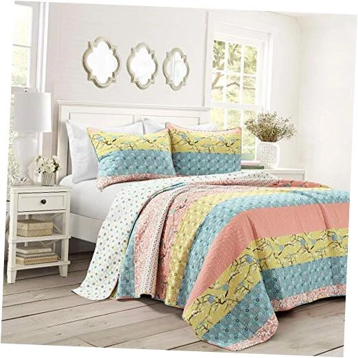 Return Policy Fast Delivery Trusted seller Royal Empire Reversible Cotton Quilt Set - 3 Piece Striped Bedding Set - Bold & Colorful Bohemian Patterns - Soft Cotton Feel - Full/ Queen, Blue and Coral Product Description 100% Cotton Colorful Quilt: Experience a burst of color and creativity in your bedroom with this Royal Empire Reversible Quilt Set. This bedding embodies the art of mixing eclectic patterns to create a signature boho look. Reverse the set to reveal a floral design. Versatile Comfort: This reversible cotton bedding set offers softness and breathability. The cotton/poly blend filling is perfect for hot sleepers and great as an extra layer for those cold sleepers who layer-up to keep warm. Complete Bedding Set: This 3 piece full/queen reversible bedding set includes: 1 quilt 88" W x 92" L, and 2 standard pillow shams 26" W x 20" L. Turn this set over to reveal a coordinating boho floral pattern, adding versatility to your bedroom decor. Easy Care: This bedding set is crafted for easy care. Maintenance is convenient, simply machine wash cold on gentle cycle, use non-chlorine bleach only when necessary, and tumble dry low. Use a steamer to release wrinkles if needed. Buy with confidence. This window panel is STANDARD 100 by OEKO-TEX certified, which means the fabric, dyes and all components have been tested in an independent laboratory and certified against a list of more than 350 harmful substances. About Us: crafts beautiful home decor for every room, style and age. Our luxury-for-less styles are designed to inspire. From timeless neutrals, rich textures and vibrant colors, we help you dress your space to reflect your personal style. : Woman Founded, Women Led Brand Shipping Returns Payment Shipping Shipping is FREE to all addresses other than APO/PO boxes in the lower 48 states. All our stock ships from US-based warehouses. Shipped via USPS or UPS (depending on location and package weight) Unless stated otherwise, all orders will ship within 24-72 hours of your payment being processed. Check our feedback to see the great reviews of FAST shipping we offer. Returns Seller does not accept returns Payment We currently accept payment via eBay managed payments only. Once payment is cleared, we will dispatch your shipment within 1-3 business days. Please refer to the "Shipping" tab for more information regarding shipping speed to your destination.