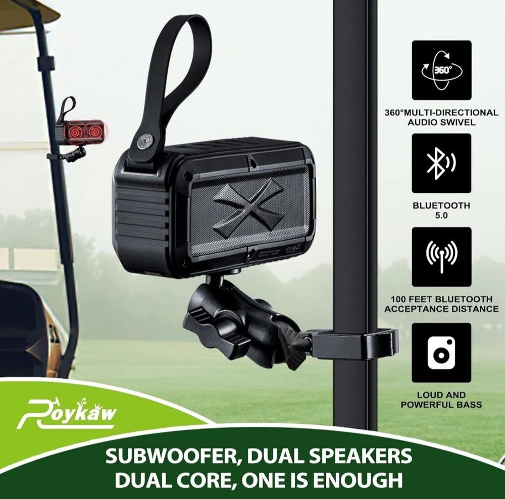 Roykaw Golf Cart Bluetooth Speaker with Mount - Portable Wireless Outdoor Sound