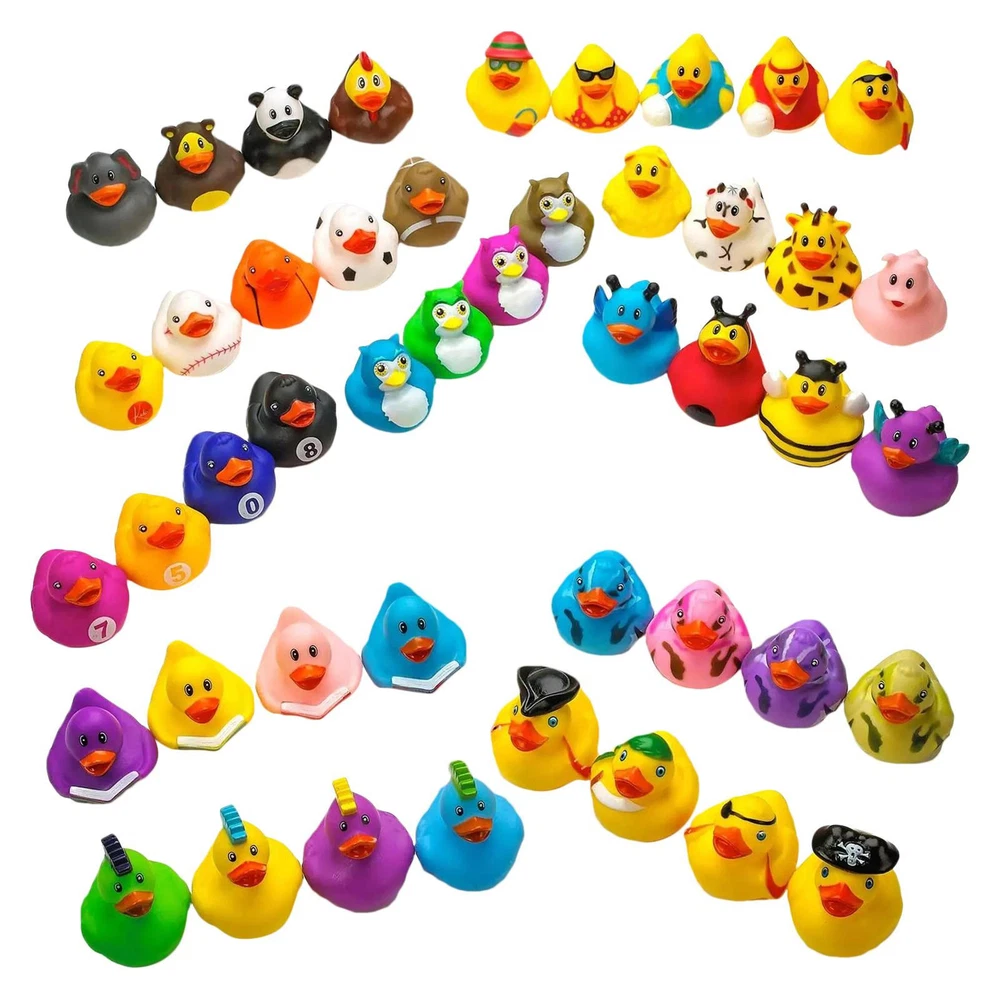 Many Colorful Ducklings: Rubber Ducks have a realistic shape that will easily attract children's attention. They come in different colors and shapes, making bath time more fun and enjoyable for your little ones. Rubber Material: Mini Ducks are made of rubber material, sturdy and reliable, child-friendly, waterproof, and not easy to fade, you can use it with confidence. Portable and Convenient: Small Rubber Ducks are small in size, light in weight, and easy to carry. It can be put into your pocket or backpack, and you can use it anytime, anywhere when you go out. Amazing Gift: These Assorted Rubber Ducks are sweet gifts for children's birthdays, Christmas, Valentine's Day, Thanksgiving Day, and other anniversaries. Wide Applications: You can use them for bathtub fun, playing outside, or swimming pool games. Mini Rubber Ducks are also ideal for school carnivals or parties, where you can give them away as prizes. Features: Rubber Ducks come in different colors and shapes, making them fun and attractive. They are made of durable material that is not easy to fade, so you can enjoy them for a long time. You can put them into your pocket or backpack and take them anywhere you go. Whether you are playing outside or relaxing at home, they will bring you joy and comfort. They are also exquisite gifts for your friends and family who love cute and colorful toys. Specification: Product Name: Rubber Ducks Material: Rubber Size: about 5-6cm/1.97-2.36inch single Weight: 15g single Remarks: Mixed packs, colors may be repeated Product List: Rubber Ducks*20pcs