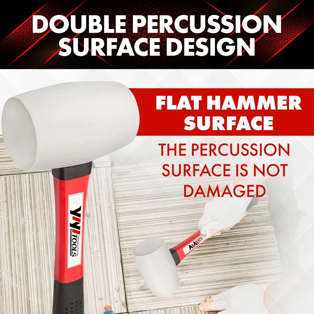 16oz Rubber mallet: Each pack comes with a 16oz rubber hammer that is shockproof, wear-resistant, and made for long term use while being versatile and easier to use making them ideal for any job. No Rebound Or Sparks: Soft, nonslip rubber grip is a directly integrated piece of the handle that can never pull loose. Made For Daily Use: The rubber mallet head is made of rubber,Exterior poly jacket protects handle core from missed strikes . Versatile and Multi-Purpose: Our multifunctional hammers use a double percussion surface design,Made for construction, woodworking, and automotive applications. Safe And Secure Grip: We designed this impact-absorbing hammer set with ergonomic handles that provide a safe, secure, and comfortable grip. They are non-slip and anti-skid so you can keep hammering away with peace of mind. Make Hammering Simpler & More Convenient With YIYITOOLS Rubber Mallet! At YIYITOOLS, we wanted to bring you essential striking tools that would make everyday life simpler. This is why we combine quality materials to bring you our shockproof rubber hammer. The hammer heads are use hammer,High-strength Fiberglass handle core helps absorb vibrations Versatile, Durable, & Functional – Suitable For Any Job Or DIY Project From tiling floors to roofing, our dead blow hammers with ergonomic hammer handles have you covered. They are the perfect choice for any DIY projects and on-site jobs making them just right for both casual and professional use. Features You’ll Love: - Resistant to rust, corrosion, and deforming for long term use - We use quality rubber that offer high temperature resistance - Ergonomically designed handle provides a secure and comfortable grip - Suitable for use construction, woodworking, and automotive applications - Each pack comes with 16oz rubber mallet Make Hammering A Breeze With YIYITOOLS Solid, Sturdy And Comfortable To Use Hammer Set!