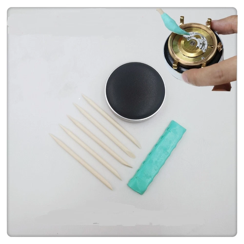 Product Description If you have any questions, please contact customer service first, do not open disputes easily, thank you! Feature: 1. It is made of high-quality rubber material with strong cleaning effects. 2. Suitable for watchmakers and watch repairers. 3. It can be used to clean watch parts and watch movement. 4. Tear off suitable clean clay and apply it to the required parts. 5. Easy to use, exquisite watch repair parts. Specification: Condition: 100% brand new Commodity type: Clay for watch cleaning Material: Rubber How to use: Clean the watch movement or dial from dust and debris by placing an appropriate amount of clay on your hand or on a wooden stick. Package Includes(Optional): 1*Clay for the watch cleaning or 2* Leather pads(one for each size) or Leather pad+clay stick set Notes: Package does not include watches and other products, thank you! About Us We accept all payments authorized by eBay. About Us We accept all payments authorized by eBay. powered by On Mar 1, 2024 at 05:51:22 PST, seller added the following information: