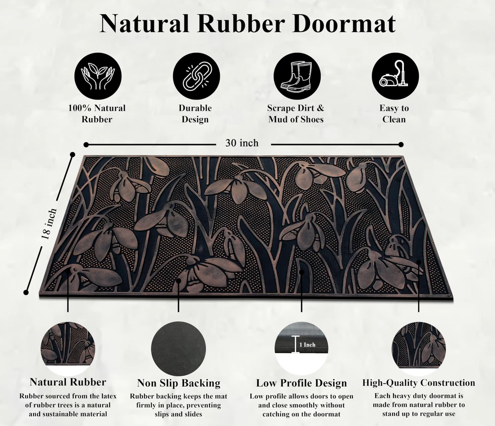 This stylish & unique doormat makes a perfectly fun addition to any porch, patio area or door. Use this mat to catch dirt as your guests enter your home or as decoration to show off your love of felines. This door mat withstands seasonal changes & can be used outside all year long. This transitional style copper & black rubber Door Mat is the perfect way to spruce up your floors & home decor while maintaining a level of practicality. MATERIAL AND LOW-PROFILE DESIGN: Our home doormat have large number of rubber pin on the surface. it is designed to be durable and sturdy, yet soft.The Low profile doormat measures 18x30" and is 1/2" thick,the door will open easily so forget about curling or getting stuck. CAPTURE DIRT AND EASY TO CLEAN: Funny designs and raised edges help this multifunctional mat catch dirt more effectively,removes debris better than other outdoor mats.This doormat helps to scrap off dirt,dust, grit, mud, sand,grass or snow and absorb moisture from shoe.The doormat indoor entrance can be cleaned quickly,just spray water over the outdoor rugs to get cleaned or by hand with a vacuum cleaner. DURABLE AND NON-SLIP BACKING: The outdoor doormats for entrance way outdoors has a powerful eco-friendly natural non skid rubber which prevents moisture leaks, that is safe for your floor ,and Our door mats will be remained in high-traffic areas, ensure a safety using.Our durable mat can be used for much longer time. UNIQUE PATTERN AND GREAT GIFT: The funny doormat is not fade and long lasting,rustic decorative design make your home or office feel friendly and welcoming.The welcome doormat is the perfect housewarming gift and a great holiday gift ideal for friends and family. INSIDE OUTSIDE WIDELY USE: Heavy duty entrance rug can be widely used be used as an indoor outdoor mat home doormat front door mat and shoe cleaning mat outdoor rug welcome mat farmhouse mat entrance mat kitchen rug garage floor mat dirty dog doormat pet mat and patio rug or as a entrance rug back, for door laundry living room lobby office patio business driveway and many more common areas.