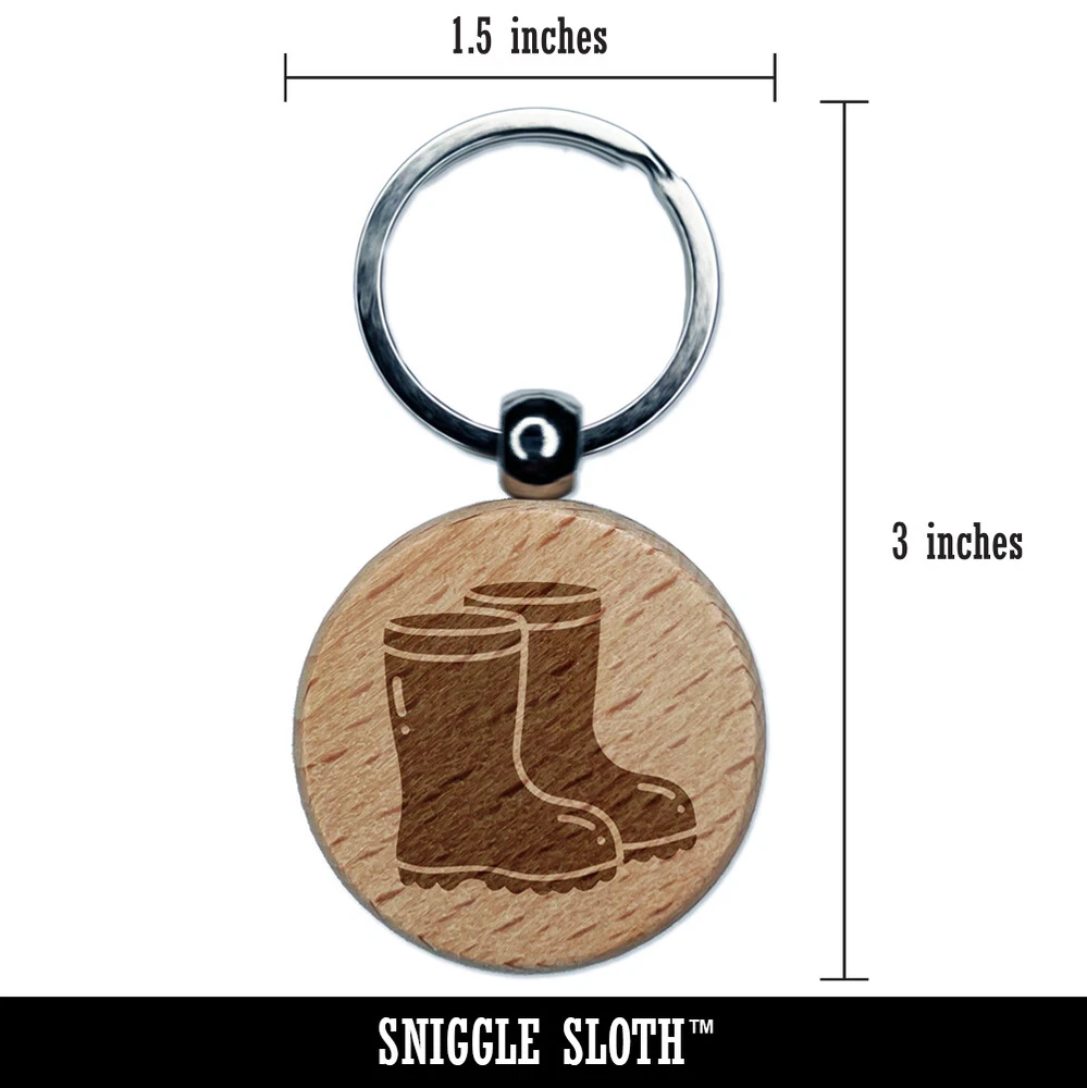Rubber Rain Boots Engraved Wood Round Keychain Tag Charm