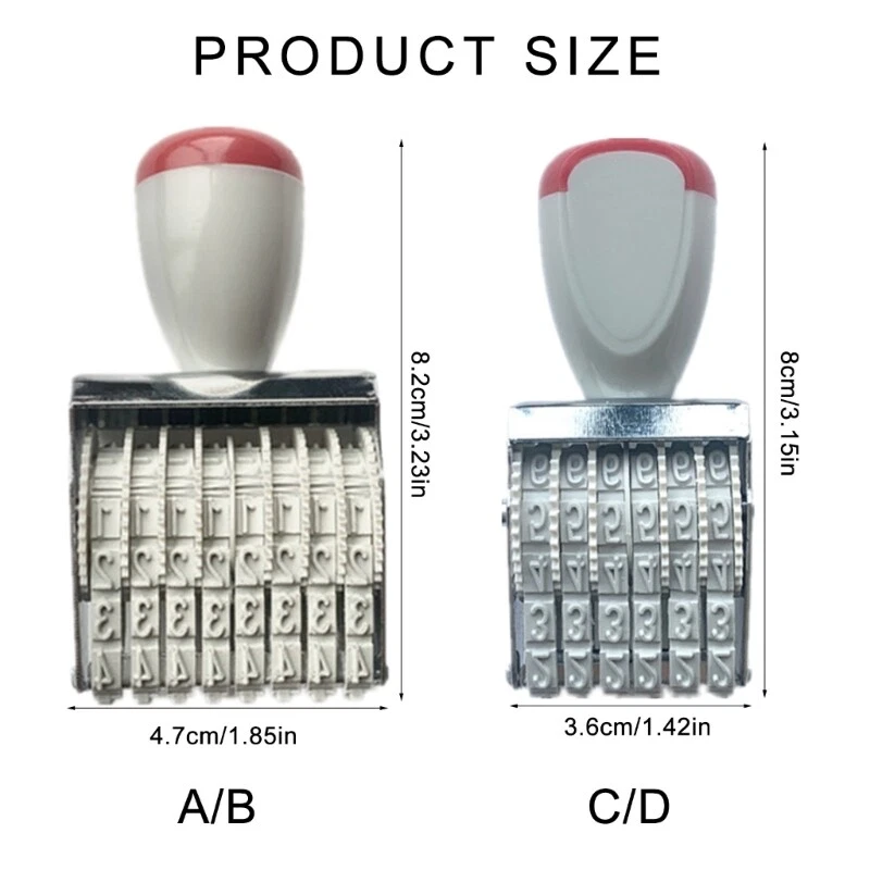 Rubber Stamp Line Dater 6 Digits Or 8 Digits Date Stamp Office Business Stamp Features: This rubber date stamp with 6 Digits or 8 Digits. Very suitable for variety of surfaces including acrylics, paper, carton, glass, cloth and leather. Multifunctional rubber stamp line dater, ergonomic handle, comfortable to grip. Works great as number stamp, date stamp, office business stamp, scrapbooking stamp. Widely used for office, warehouse, workshop, supermarket, cafe, bakery, or for scrapbooking, card making, labeling package. These date stamp widely used for making date codes, batch codes for packaging production. Crafted from pp, this small rubber date stamp features rotating wheel, convenient to use. Specifications: Component: PP Color: Silver As Picture Shown Type: 908 Number Stamp; 6 Digits Number Stamp Number Size 1: Approx. 4mm/0.16in Number Size 2: Approx. 5mm/0.19in 6 Digits Stamp Size: Approx. 3.6x8cm/1.42x3.15in 8 Digits Stamp Size: Approx. 4.7x8.2cm/1.85x3.23in Weight: Approx. 30g; 38g Package Includes: 1Piece Date Stamp note: 1.Please allow 0-1cm error due to manual measurement. Be sure you donot mind before bid. 2.Due to difference between different monitors, the picture may not reflect the actual color