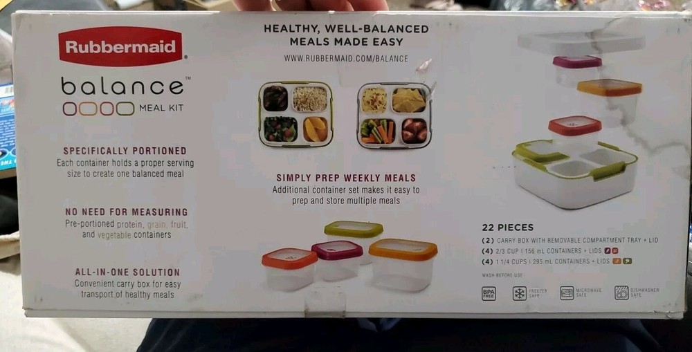 NEW OPEN BOX NEVER USED RubberMaid Balance 2 MEAL KITS Food Lunch Boxes Containers Kitchen Storage.