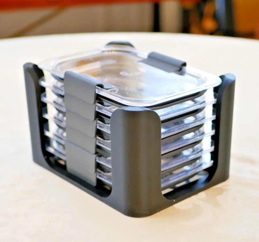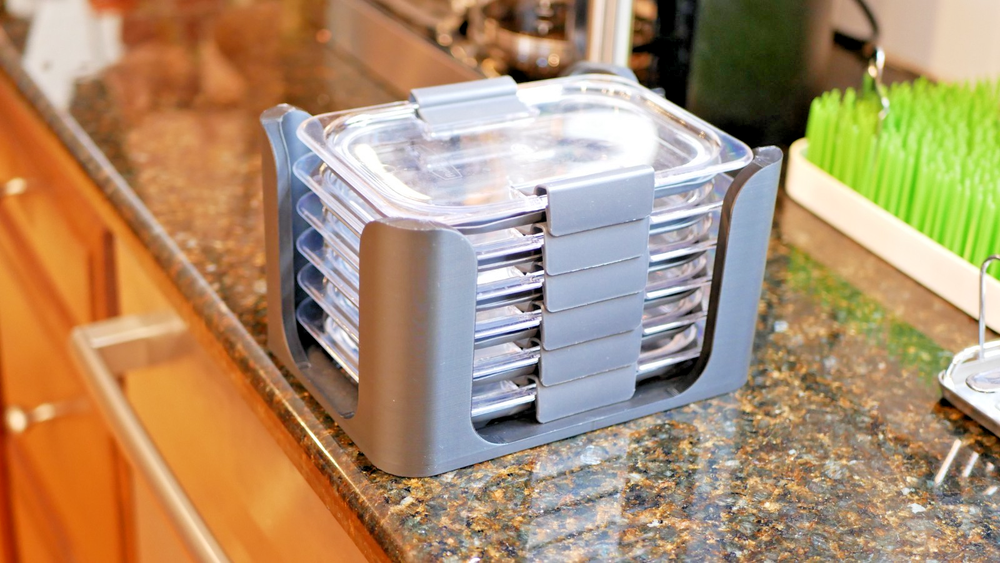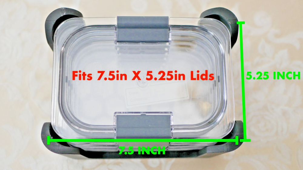 COMPATIBLE WITH RUBBERMAID MEDIUM 5.25 X 7.5 INCH FOOD CONTAINER LIDS FOOD CONTAINERS NOT INCLUDED! This is the perfect storage solution for neatly organizing the lids to your rubbermaid food containers. After making one for my self, I found it so useful for saving space that i wanted to share it for others to enjoy too.