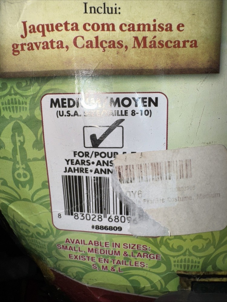 The product is a Rubie's Frank Hotel Transylvania 2 Halloween Fancy Dress Costume in size Medium (8-10). This costume is themed around Halloween and features a dress style, making it ideal for boys looking to dress up for the occasion. The Rubie's brand ensures quality and authenticity, allowing children to easily transform into their favorite character from the iconic Halloween movie.