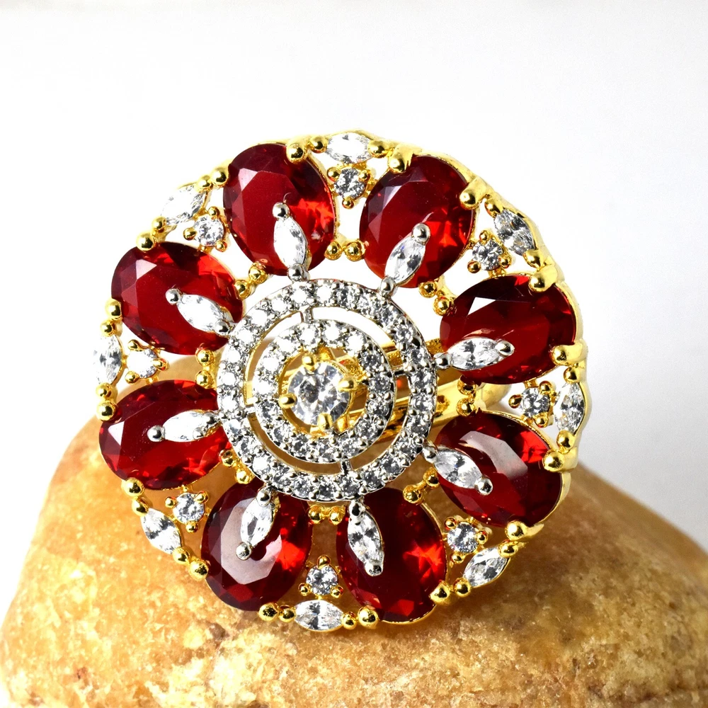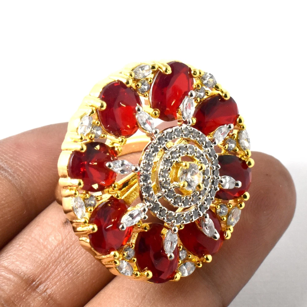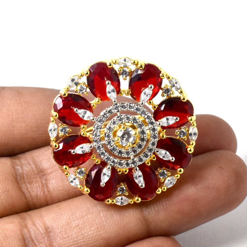 Welcome To Our Store Ray Fine Ornates Country Of Origin : India Brand Name : Ray Fine Ornates Stone Name :- Ruby And CZ Diamond Shape :- Oval Stone Size :- 5x7 mm Approx. Head Size :- 33x33 MM , Color :- Red and White , Weight :- 12.3 Gms, Approx. , SKU Code- 35 NON-ALLERGIC PRODUCTS We Are Extremely Delighted To Present You Our Exclusive, Elegant & Stylish Wide Variety Of Fashion Jewelery Products Of Best Quality At The Best Price. We Believe In Building Trust & 100% Customer Satisfaction. Jewelery Care Guide • A little care will go a long way wipe with only dry polishing clothing in circular motion & store the jewelry in a Plastic Container after use. • The item will come within a plastic box or plastic bag. • Avoid contact with perfumes, lotions and water. • Piling up jewellery may leave scratches. "This is not ready product; we will make it especially for you once we receive the payment. The actual product may look similar" FOR RING SIZE PLEASE WRITE "NOTE TO SELLER" DURING CHECKOUT !! " Special Note For Buyers - Please Write a Seller Note About Ring Size During Checkout". PAYMENTS To assure you the maximum comfort and satisfaction we accept the following payment methods: We accept payment by Pay Pal. Pay Pal is safest and quickest mode of payment which not only enables us to expedite your shipment speedily but also protects every one’s interest. Overseas buyers are advised to pay through Pay Pal only for instant deliveries. SHIPPING Packages are shipped via Registered International Air Mail. We ship within 2 business days after order is received. Delivery is generally within 10-15 days worldwide after shipping. In rare cases it may take up to 2-3 weeks for delivery depending upon the destinations and customs regulations in your country. You are informed immediately after shipping. International buyers are responsible for duties, customs and taxes on your order. ECONOMY SHIPPING (10 - 15 DAYS) - $0.00 STANDARD SHIPPING (5 - 10 DAYS) - $12.99 EXPRESS SHIPPING (1 - 5 DAYS) - $22.99 IF ANYONE QUESTION ABOUT SHIPPING OR WANT ANY FAST-SHIPPING SERVICE CONTACT US REFUND Your Satisfaction Is Our Priority. Please contact us within 14 days after item received, our customer service will work out a solution such as (refund, store credit, and etc). The item must be returned in its original condition, unworn and unaltered in any way. We do not cover the return postage unless the item is damaged or broken. FEEDBACK Feedback is a vital part of the eBay community. Positive Feedback is left for you shortly after shipping the goods. We will try our best to resolve any issue that might come up, so please contact us before leaving any Negative Feedback. OUR FIRST PRIORITY IS CUSTOMER’S SATISFACTION AND HAPPINESS. Thank You For Visiting Our Store. HAVE A NICE DAY!!!!