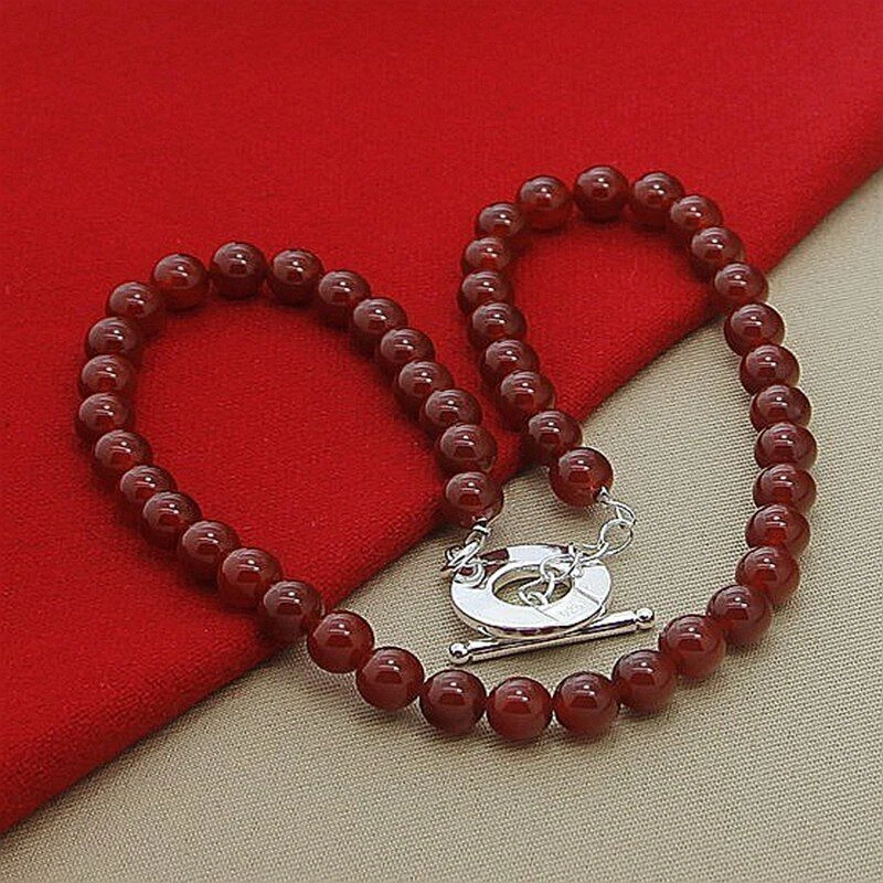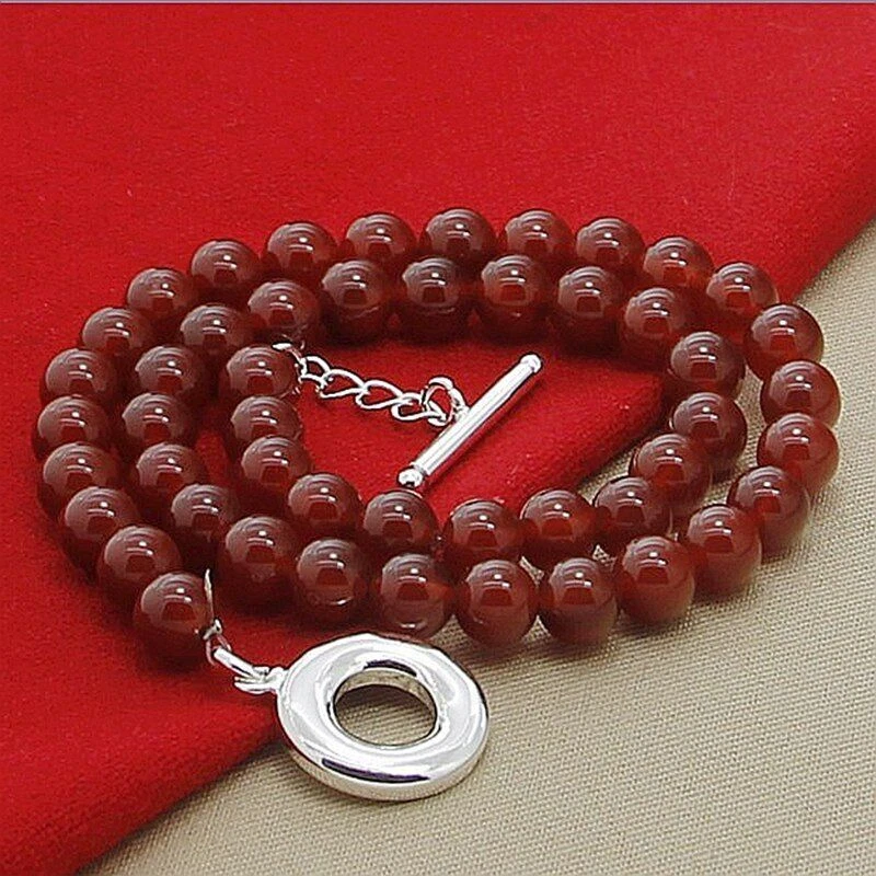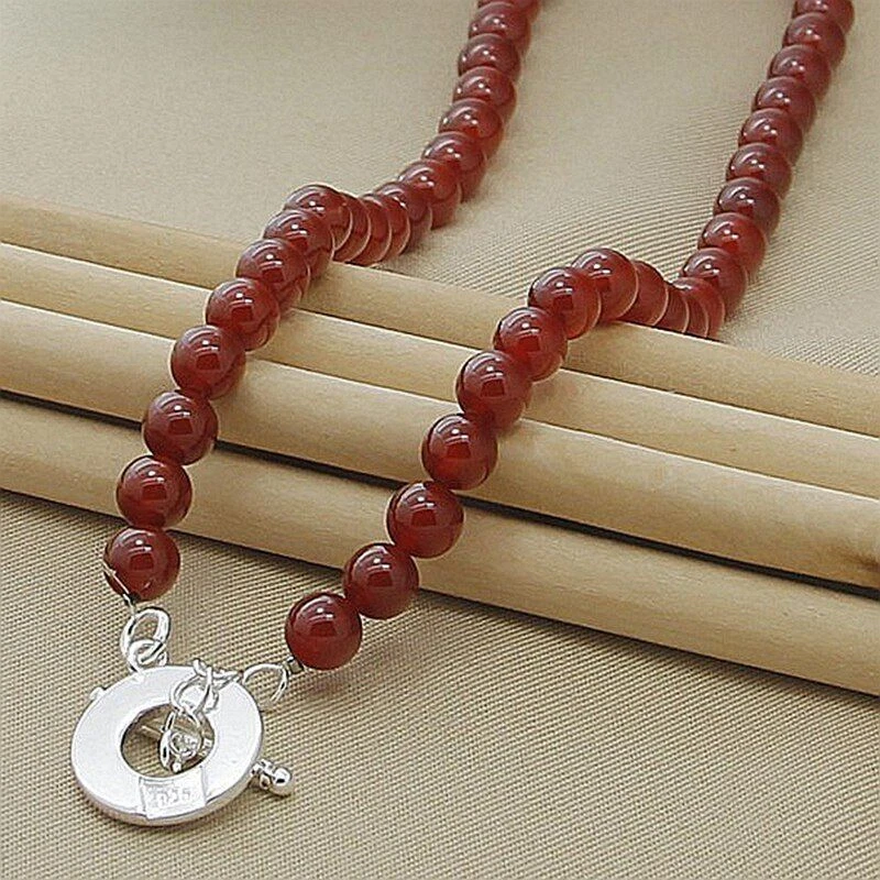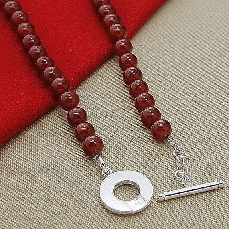 eBay Product Description Brand : Cy trendy Material: Red Agate 925 Sterling Silver Color: Silver + Red Chain Lenght: 18 inches(45cm) Weight: 45g Package include : 1 chain