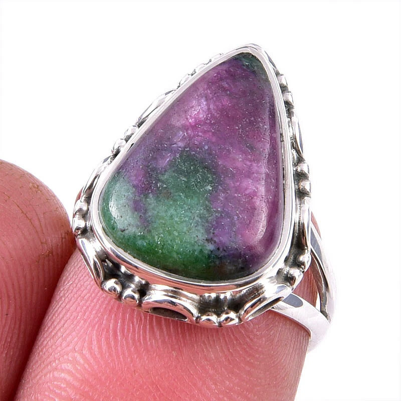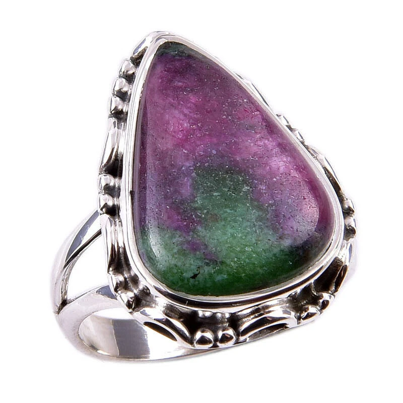 Ruby In Zoisite Handmade Lab-Created 925 Sterling Silver Jewelry Ring S.6