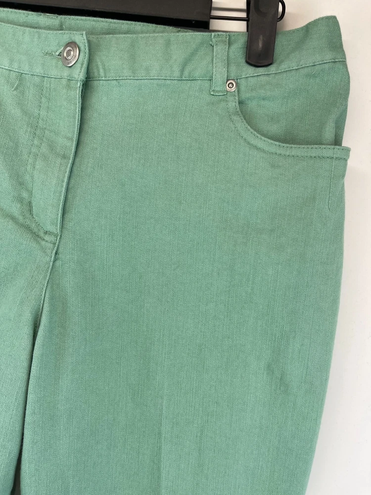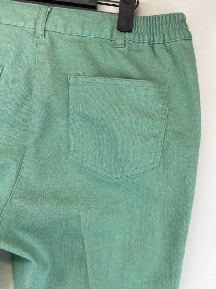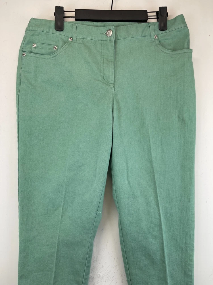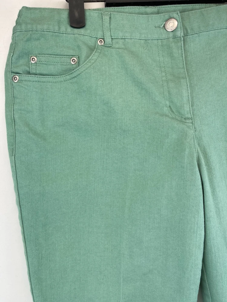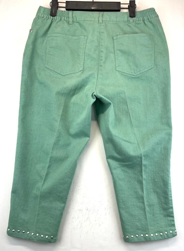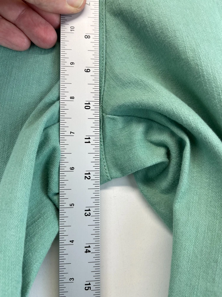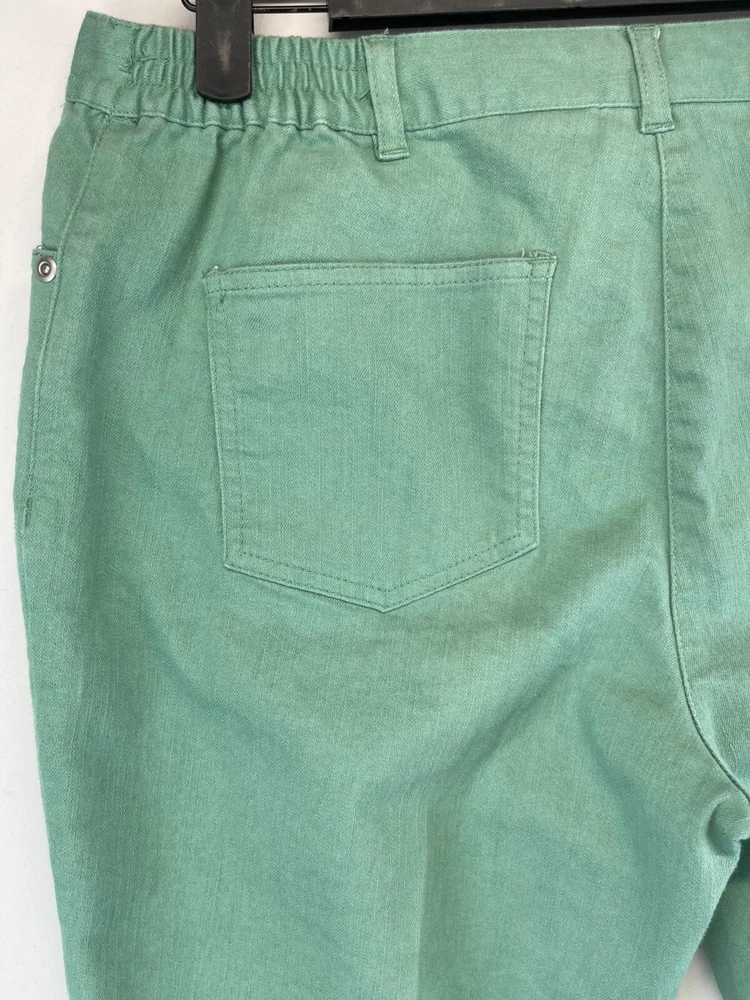 Elevate your wardrobe with these stunning Ruby Rd. Petite Capri Pants. Perfect for any occasion, whether it be for travel, workwear, or casual wear, these pants come in a beautiful green color and are made of a comfortable blend of polyester, spandex, and cotton. The pants feature an elastic waistband and pockets for added convenience, while the studded accents give them a touch of bohemian flair. The mid-rise fit and straight leg style make these pants flattering for any body type, and they are available in a Women's Size 12P. These pants are machine washable and have a flat front, making them easy to care for and perfect for everyday wear. Add these fun and preppy pants to your collection today! Very good preowned condition with normal preowned wear and issues. Please see all photos. For clothing specifically, see photos for all measurements and/or any issues if applicable. Pay close attention to the measurements as the size of the garment may quite possibly be different than the actual measurement(s) due to washing, shrinkage, or stretching as these are used clothes. The size in the title is the size on the tag of the garment. See photos for measurements of actual measurements as they may differ. ALWAYS CHECK THE MEASUREMENTS IN THE PHOTOS. This will remove any questions on measurements as well as always cover the possibility of human error in the listing(s) in the case of a typo or oversight. All clothing and shoes have been washed/cleaned, and comes from a smoke free environment. If shoe trees appear in the photos, they are for photography purposes only to illustrate how the shoes look filled out, and are not included. I am available for questions. I accept or negotiate reasonable offers. Have an amazing day. Thank you.