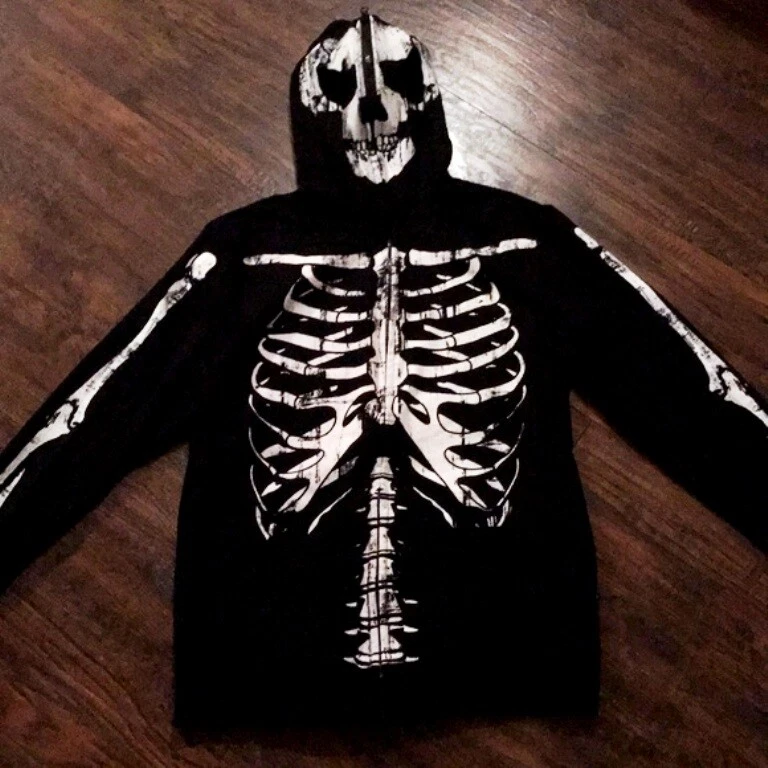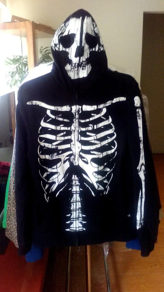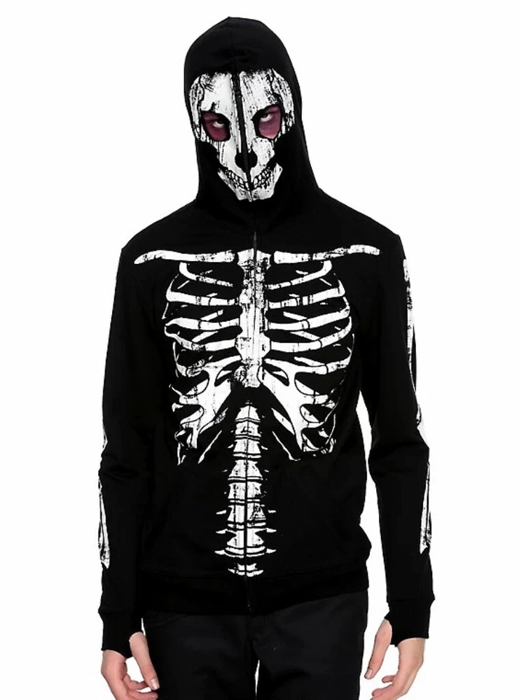 Rude - Skeleton Hoodie With Zip Up Mask Men's Size Small