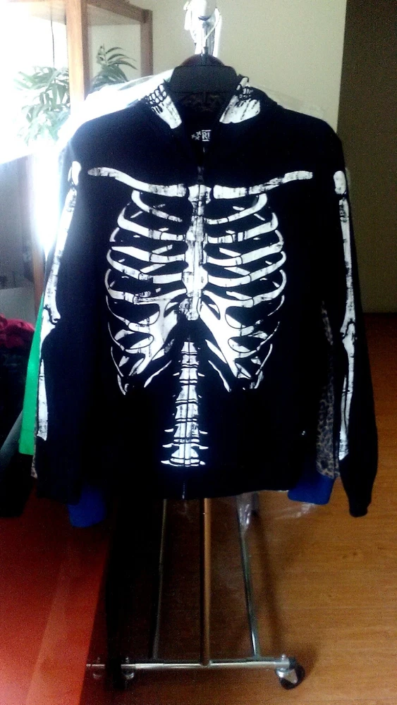 Character: Skeleton Department: Men Closure: Zip Size Type: Regular Brand: Rude Material: Cotton Blend Type: Hoodie Seller Notes: “Like new!” Color: Black Size: S Style: Full Zip