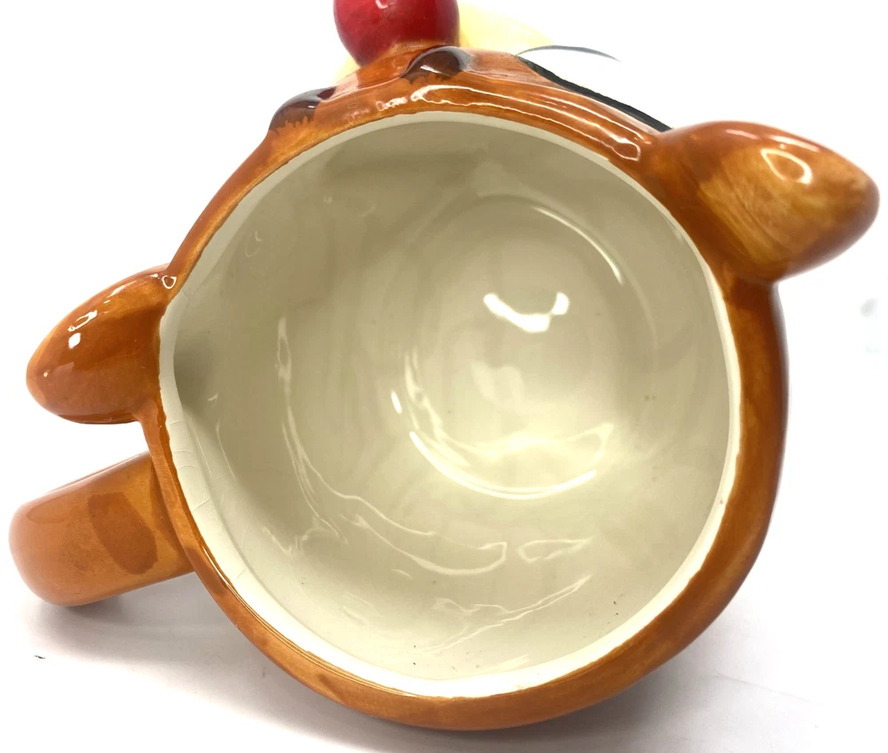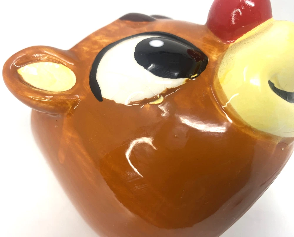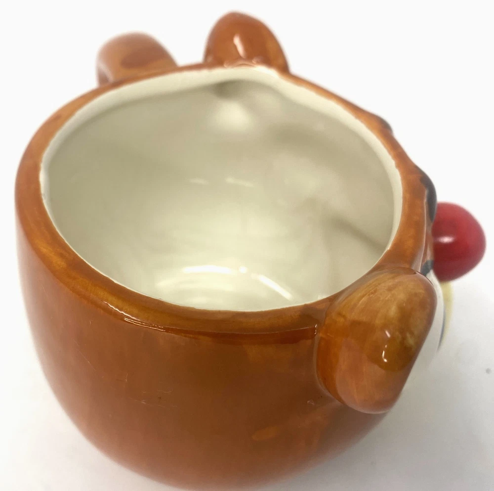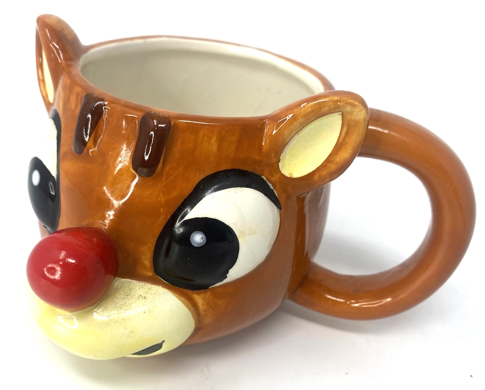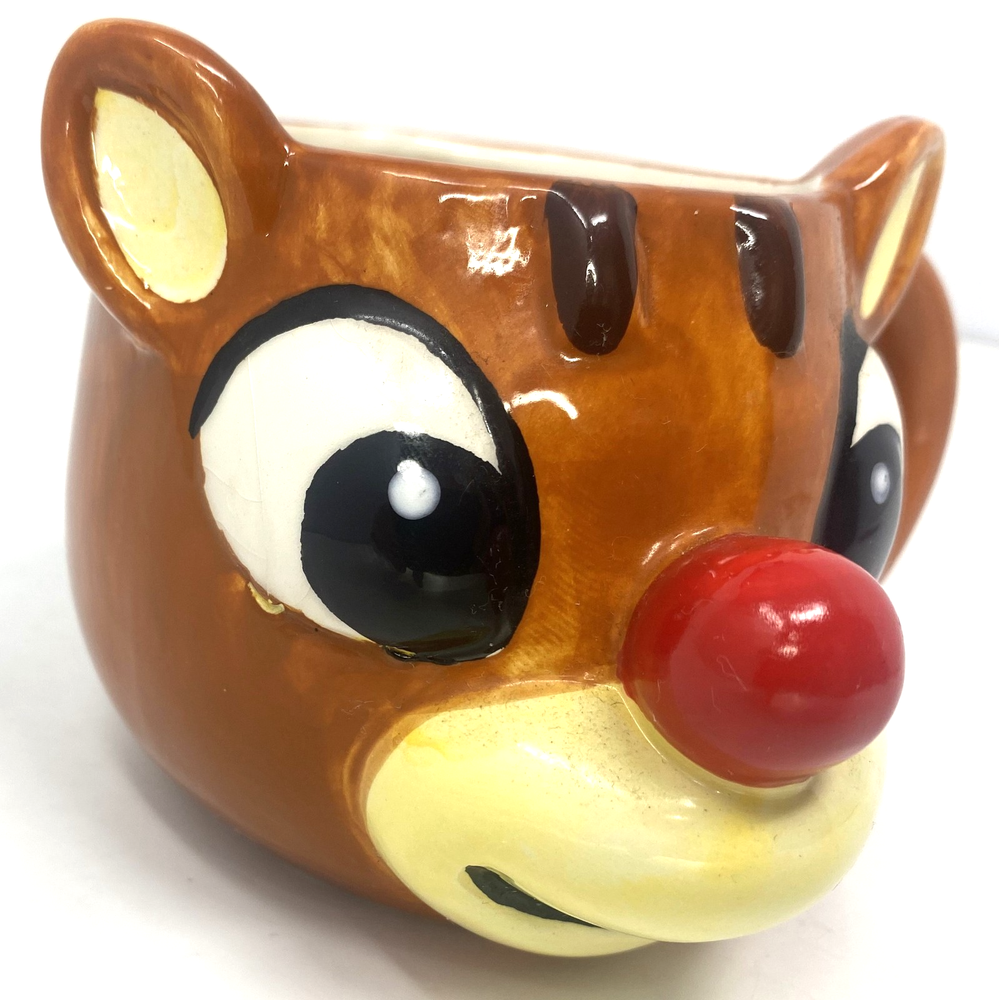 Rudolph Reindeer 3D Face Mug Flix Candy Ceramic Cup Red Nose Christmas VTG We got this mug in a Christmas candy set, and it immediately became “the special cocoa cup” — but then no one ever wanted to be the one to actually use it, because it was too cute. One year we gave in and filled it with cinnamon sticks and Hershey’s kisses for decoration, and now every December, it goes from box to counter without ever holding a drop of cocoa. Basically, this mug’s had a cushy gig for a decade. Start your day with a little Christmas cheer and a lot of character — literally. This vintage Rudolph the Red-Nosed Reindeer mug by Flix Candy features a fully sculpted 3D face with his bright red nose, wide eyes, and that classic "I'm trying my best" holiday smile. Originally sold as part of a gift set, this mug is now a charming collectible. Whether you use it for cocoa, pencils, or just as part of your Christmas display, Rudolph's face is hard not to love. Details: Brand : Flix Candy Item : 3D Sculpted Ceramic Mug Character : Rudolph the Red-Nosed Reindeer License : Character Arts, LLC Item Number : 361325 Stamped : 140730 Care : Hand wash only Material : Glazed ceramic Color : Brown with red nose, white interior Size : Approx. 4.5" wide x 3.5" tall Made in : China Condition: Pre-owned vintage condition. There is light surface wear, a small chip/glaze flaw below one eye (see close-up), and some crazing in various areas of the glaze — common for mugs of this type and age. No deep cracks or structural damage. Clean inside and ready for display. Thank you so much for supporting my small business! All Items listed are in my possession: Chicago, IL, United States of America Please see all photos as they are considered a complete part of the description and condition of the item listed. Please feel free to ask questions prior to purchasing I promise Speedy fast shipping I welcome any questions that you may have. Wishing you good health. Thanks You may like other items here in my eBay store Feedback Please leave me feedback for your order, as I will for you! I greatly appreciate positive feedback It helps to grow my business. Go Green! Buy Used! What could be more environmentally friendly than purchasing well cared for pre-owned shoes, clothes or other items instead of new? Buy used, save money, give perfectly usable items a new life and keep them out of the landfills!