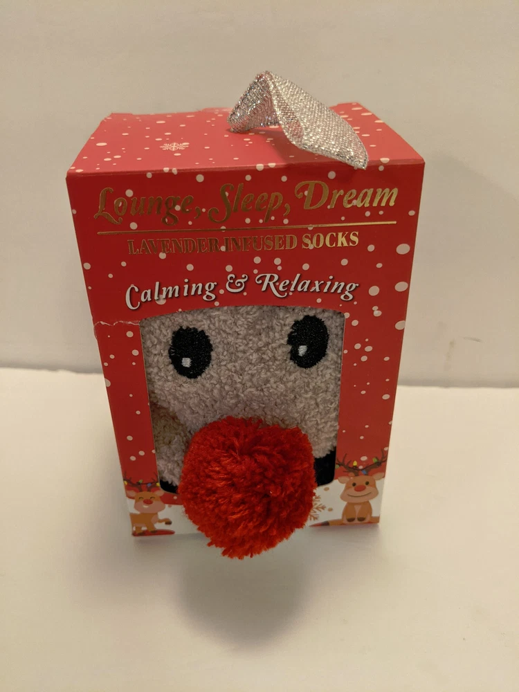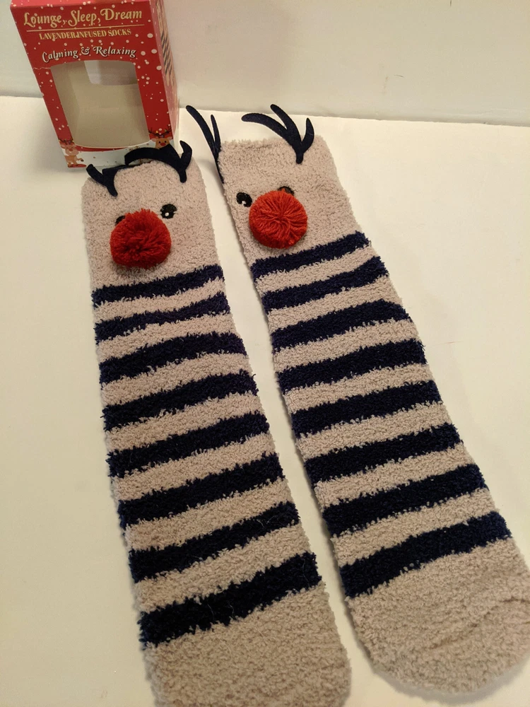 RUDOLPH the RED NOSED REINDEER SOCKS New in box One size Lavender Infused 95% polyester - 5% Spandex Fuzzy type socks Antlers also! Such fun socks! Free ship