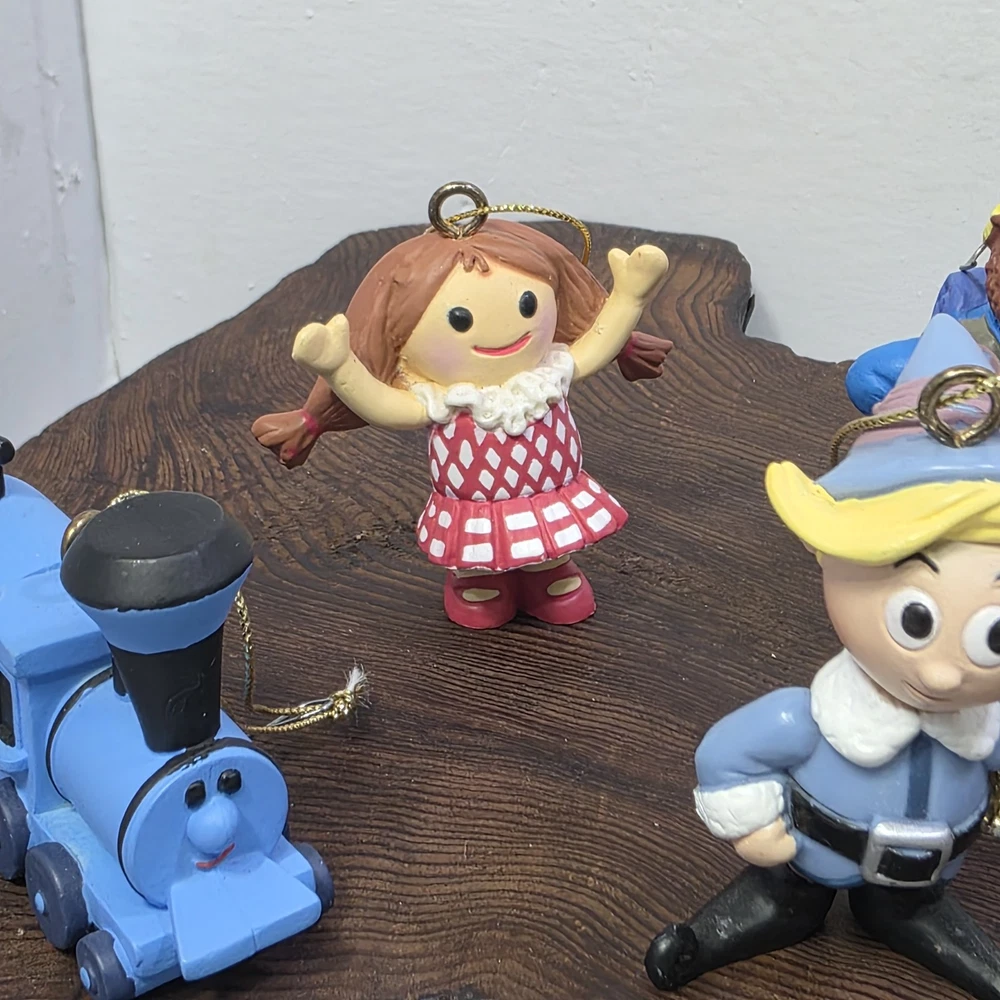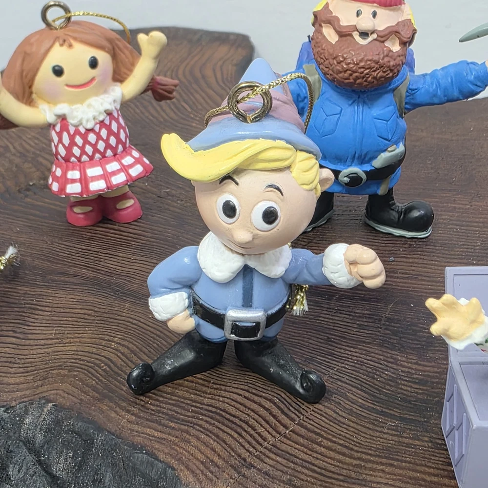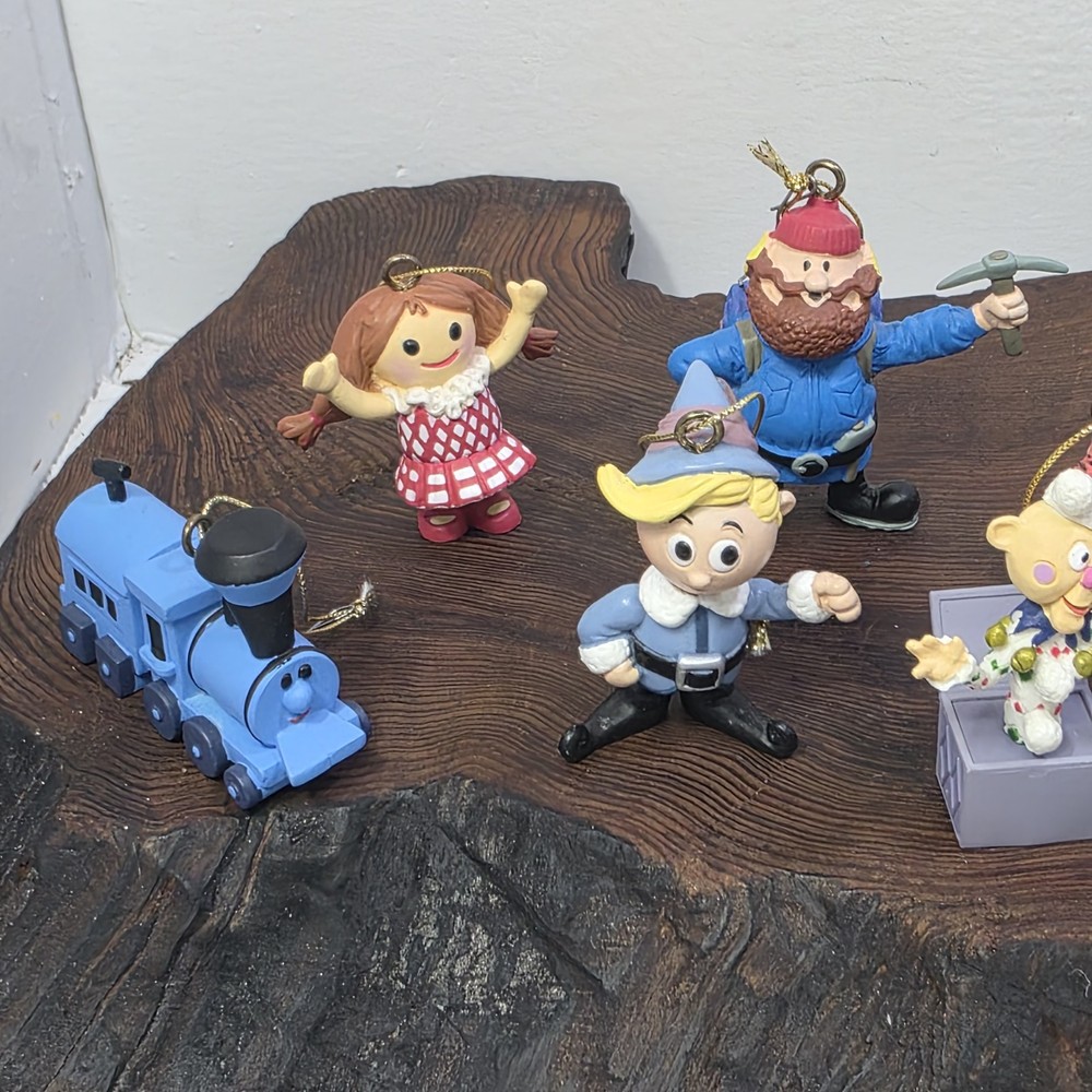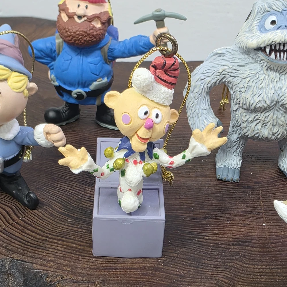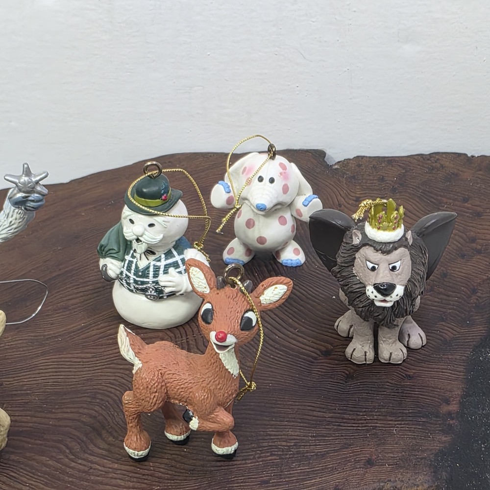 π Item Description This listing is for a lot of officially licensed ornaments from the classic Rudolph the Red-Nosed Reindeer television special by Rankin/Bass. The group includes characters from the Island of Misfit Toys as well as main film favorites, all produced under The Rudolph Company / R&C licensing. These are molded decorative ornaments (not Hallmark Keepsakes). π Characters Included Bumble (Abominable Snowman) Yukon Cornelius Hermey the Elf Rudolph Clarice Sam the Snowman King Moonracer Dolly for Sue Island of Misfit Toys Train (licensed Misfit Toys piece) π Details Official Rankin/Bass / Rudolph Company licensed ornaments Molded resin / composite construction Each piece includes its hanging cord Most marked Β© R&C / The Rudolph Company / Made in China on base π Condition All ornaments are in very good pre-owned condition. No cracks, breaks, or repairs observed Light surface wear and minor paint variations consistent with age and display Hanging loops and cords intact Please review photos closely as they are part of the description π Notes for Collectors These are not Hallmark Keepsake ornaments This is a matched Rankin/Bass Rudolph / Misfit Toys grouping, ideal for display or completing a collection